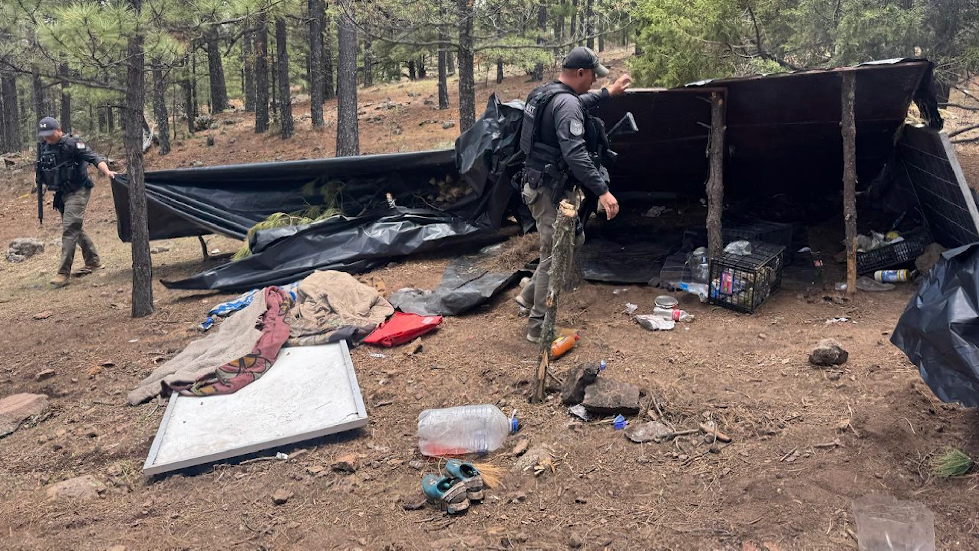 La estructura fue detectada mediante un dron por agentes de la Fuerza Especial SWAT en la cima de un cerro de difícil acceso. Al inspeccionar el sitio, se confirmó que el campamento contaba con víveres, paneles solares, cobijas y utensilios, todo cubierto con una carpa improvisada. Los agentes procedieron a su destrucción, conforme a los protocolos establecidos.