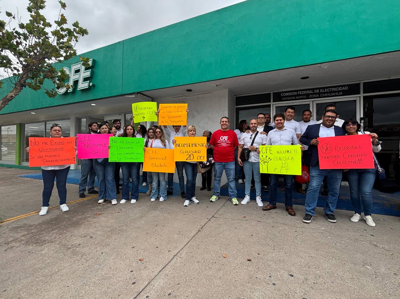 Chihuahua, Chih.- Un grupo de trabajadores de la Comisión Federal de Electricidad (CFE) realizó un paro de labores en protesta por el incumplimiento del contrato colectivo de trabajo por parte de la paraestatal, específicamente en lo referente a la cláusula 20, que contempla la entrega de uniformes, medios de protección y herramientas necesarias para realizar sus funciones.