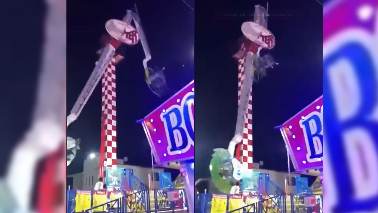 En el clip, se aprecia cómo uno de sus ejes se rompió, lo que habría provocado que una parte de su estructura cayera cuando el juego funcionaba con gente a bordo.