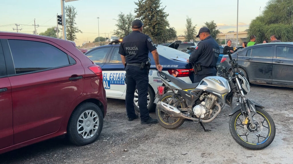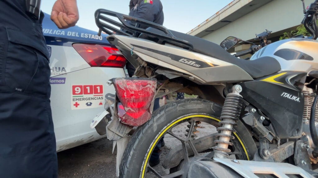 Chihuahua, Chih.- Dos tripulantes de una motocicleta resultaron con lesiones de consideración luego de ser embestidos por un automóvil en el cruce de Teófilo Borunda y la vialidad Sacramento.