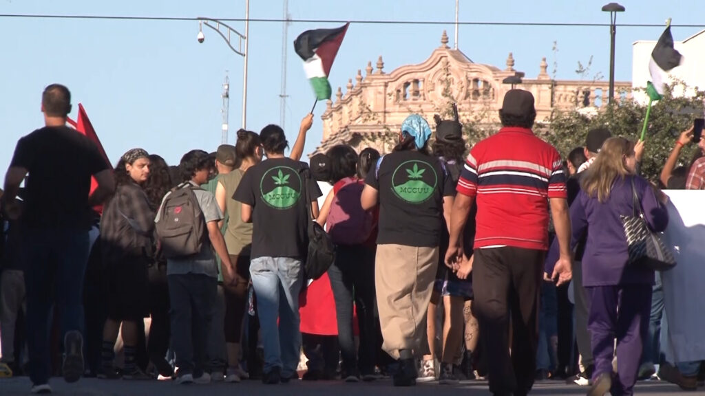 La conmemoración inició con una marcha en la que participaron distintos colectivos, entre ellos agrupaciones solidarias con Palestina.