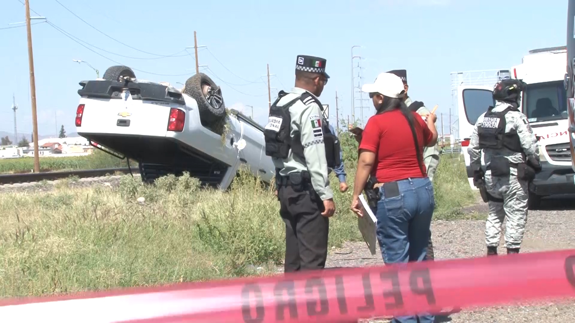 Según el reporte, el conductor perdió el control al esquivar unas piedras, lo que hizo que la camioneta saltara al lado contrario de la vialidad y volcara a unos metros de las vías del tren.