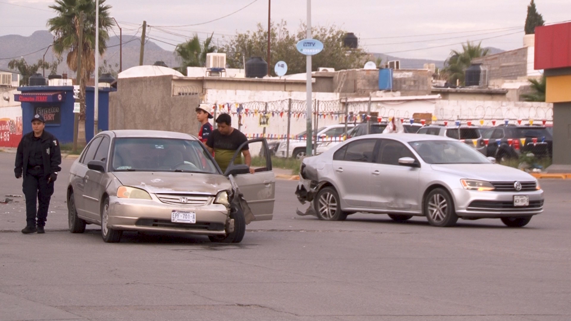Chihuahua, Chih.- Una colisión entre dos vehículos dejó únicamente daños materiales, sin que se reportaran personas lesionadas.