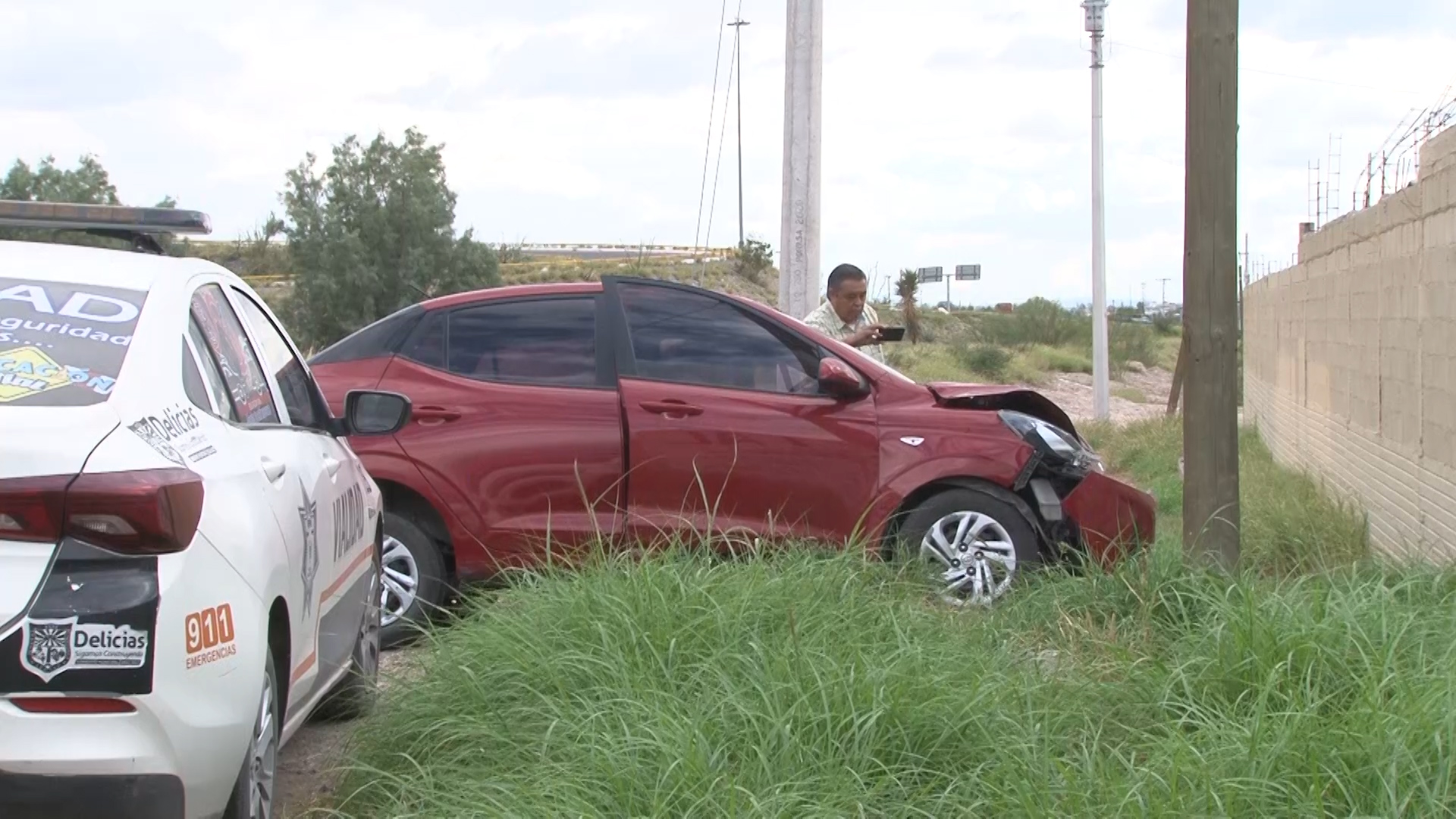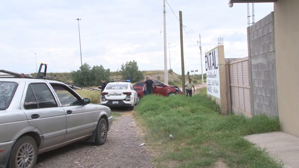 Delicias, Chih.- Un conductor perdió el control de su vehículo y terminó chocando la tarde de este jueves contra un poste y una barda en la curva, cuando pretendía integrarse al acceso norte, a un costado de un taller mecánico y un motel, en el sentido de Meoqui a Delicias.