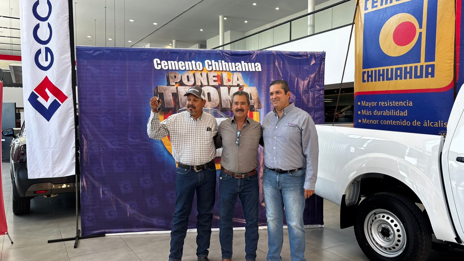 Chihuahua, Chih.- A través del programa “Cemento Chihuahua pone la troka”, la agencia Jidosha Nissan y Grupo Cementos de Chihuahua (GCC) entregaron una camioneta Frontier SE, modelo 2025, al ganador Alfonso Baca, de la empresa Camachi, quien desde hace muchos años es cliente de la cementera.