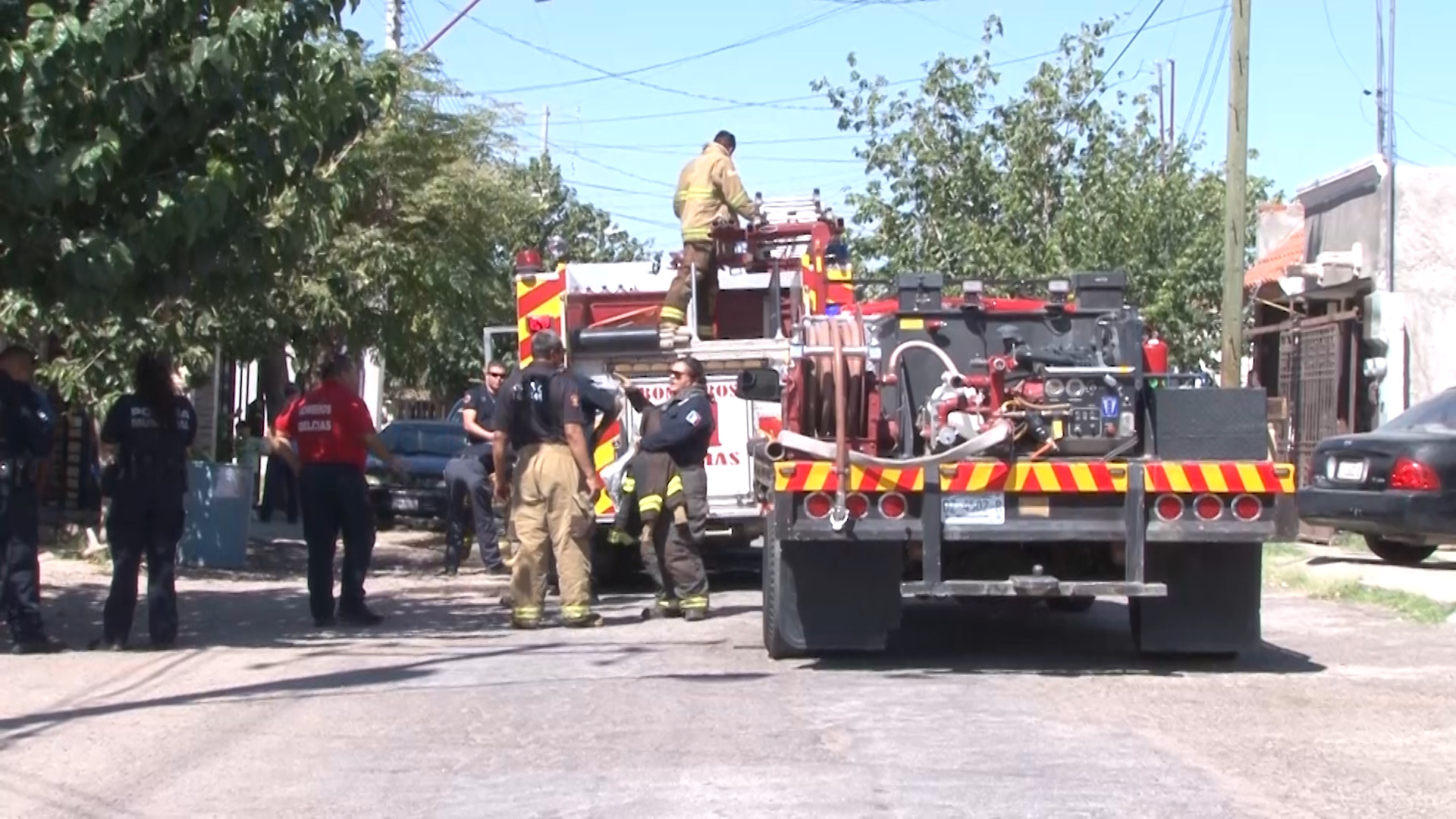 Arriba de la vivienda se encontraban dos perros pitbull, asustados por el humo. Vecinos comenzaron a echar agua con cubetas mientras llegaban los equipos de emergencia. Los canes fueron salvados por sus dueños y resguardados del peligro.