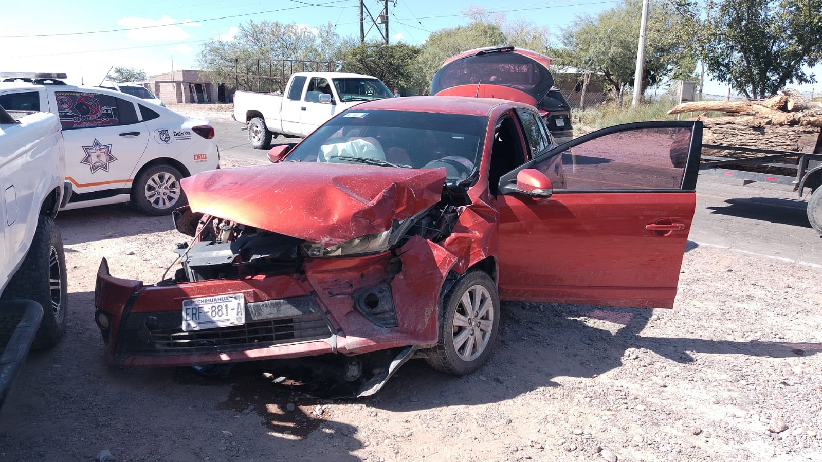 Chihuahua.- En Delicias, un accidente entre dos vehículos se registró en el kilómetro 6 de la carretera Delicias–Rosetilla, a la altura del rancho Pénjamo, la tarde de este lunes.