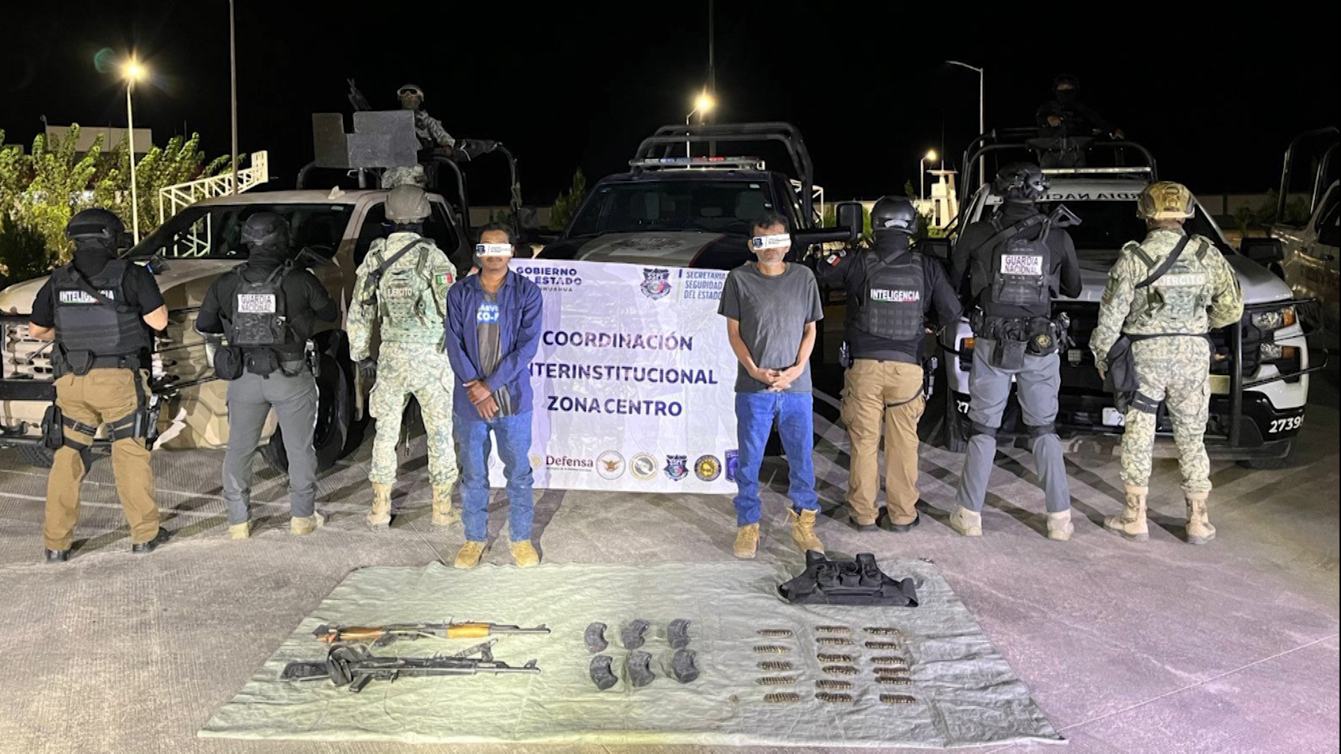 A los detenidos se les aseguraron dos fusiles AK-47 calibre 7.62×39 mm, seis cargadores con capacidad de 30 cartuchos cada uno, 171 cartuchos útiles del mismo calibre y un chaleco táctico de color negro.