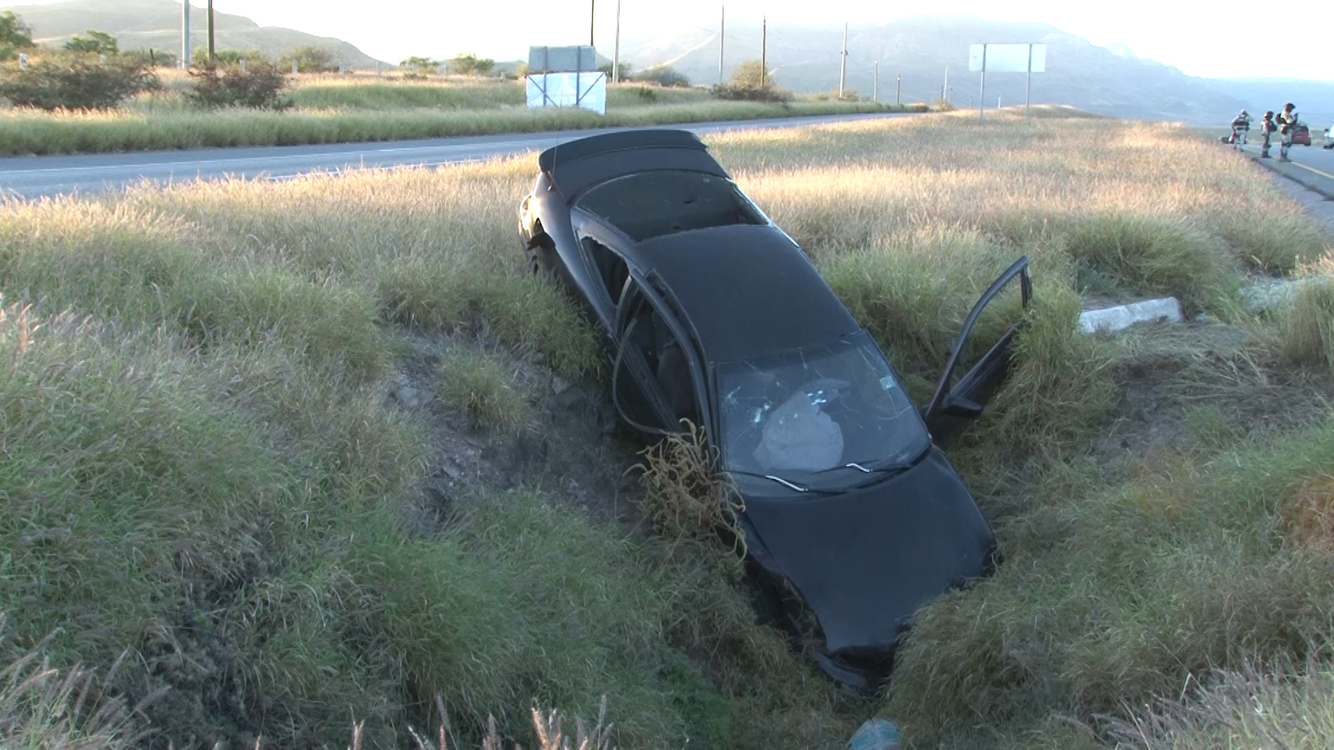 Meoqui, Chih.- Un vehículo cayó a una zanja en el kilómetro 172 de la carretera 45 en el muncipio de Meoqui, en el sentido de Lázaro Cárdenas a Chihuahua, entre Bachimba y Lázaro Cárdenas, la tarde del sábado.