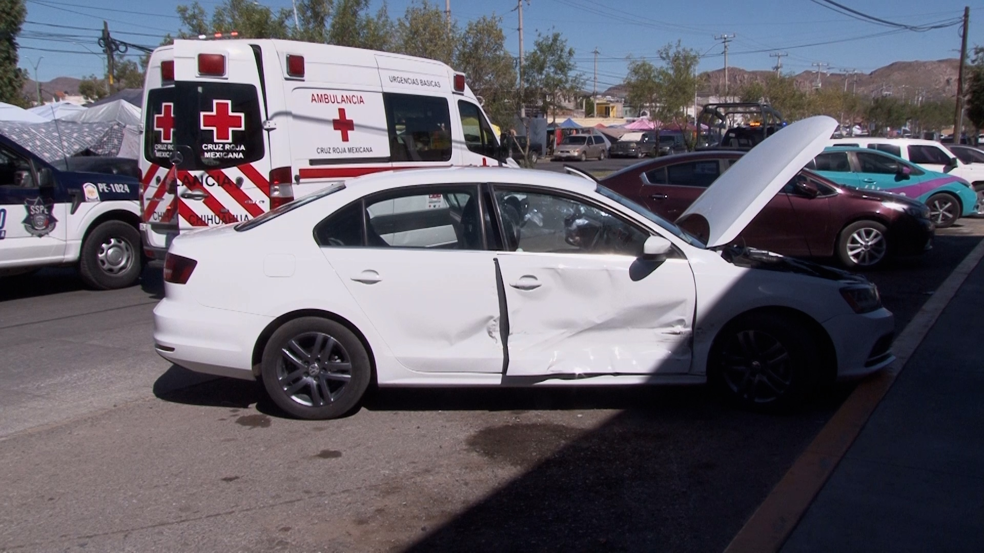 Chihuahua, Chih.- Un fuerte choque con personas atrapadas dejó como saldo a una mujer de la tercera edad con lesiones de consideración sobre la avenida Fedor Dostoyevsky y el cruce con Porfirio Parra, al norte de la ciudad.