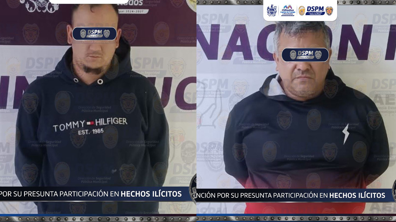 Chihuahua, Chih.- Juan Carlos C. M., de 50 años, y Alan A. M., de 30, ambos procedentes de la Ciudad de México, fueron detenidos en la colonia Junta de los Ríos por presuntamente asaltar con violencia un expendio de leche, huyendo en un Nissan Tiida blanco.