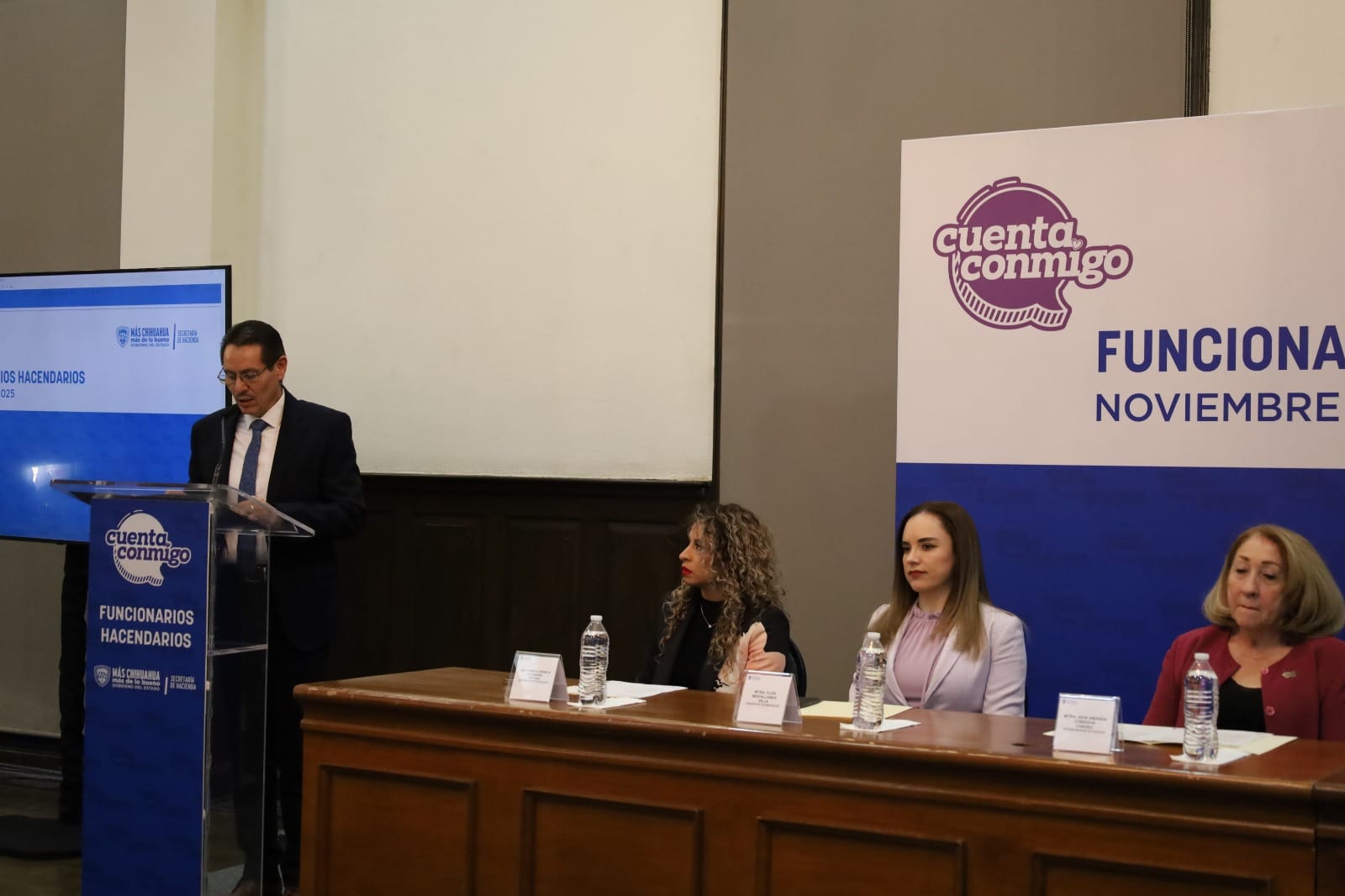 Chihuahua.- Con el objetivo de fortalecer la planeación financiera de los municipios y garantizar la correcta integración de las Leyes de Ingresos para el ejercicio fiscal 2026, la Secretaría de Hacienda, en coordinación con el Instituto para el Desarrollo Técnico de las Haciendas Públicas (Indetec), llevó a cabo una jornada de capacitación dirigida a tesoreras y tesoreros municipales de las distintas regiones del estado.