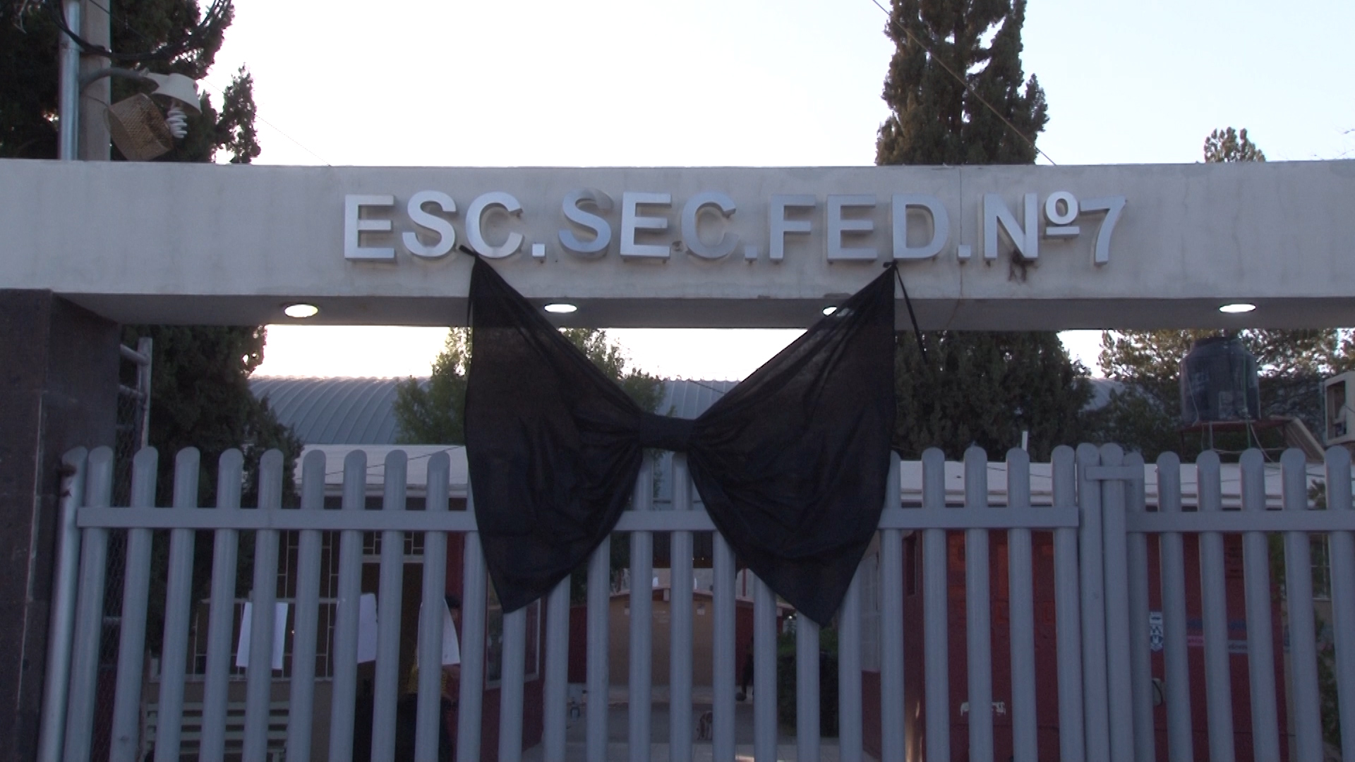 Chihuahua, Chih.- En la entrada de la Escuela Secundaria Federal número 7 se colocó un moño en señal de luto, tras el fallecimiento de Vela Yasmín S.P., de 14 años. La alumna perdió la vida en el trágico accidente ocurrido en el Periférico R. Almada.