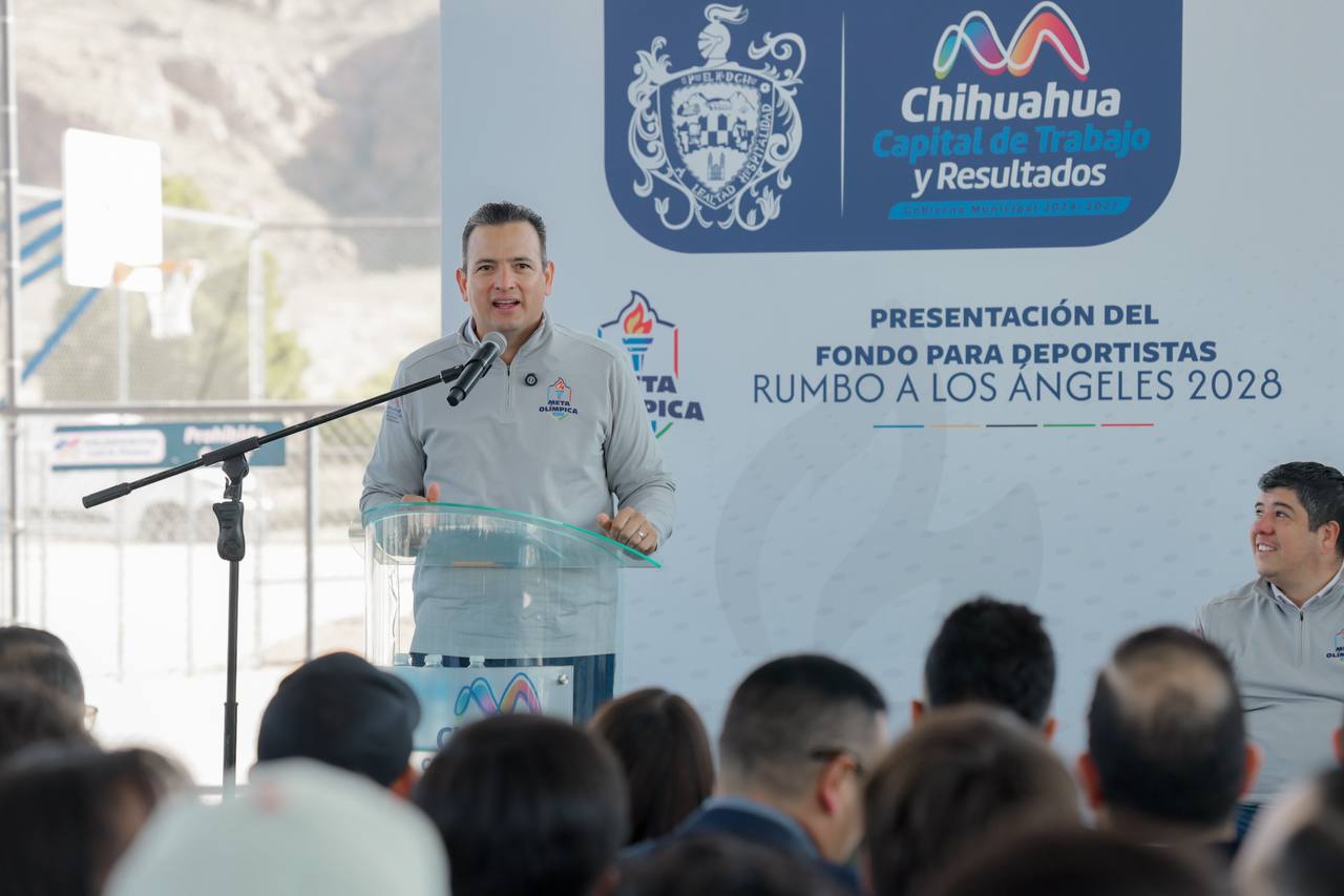 Chihuahua, Chih.- El alcalde de Chihuahua, Marco Antonio Bonilla Mendoza, presentó el fondo para deportistas “Meta Olímpica”, destinado a atletas de alto rendimiento rumbo a los Juegos Olímpicos de Los Ángeles 2028, durante un evento realizado en el Polideportivo Luis H. Álvarez.