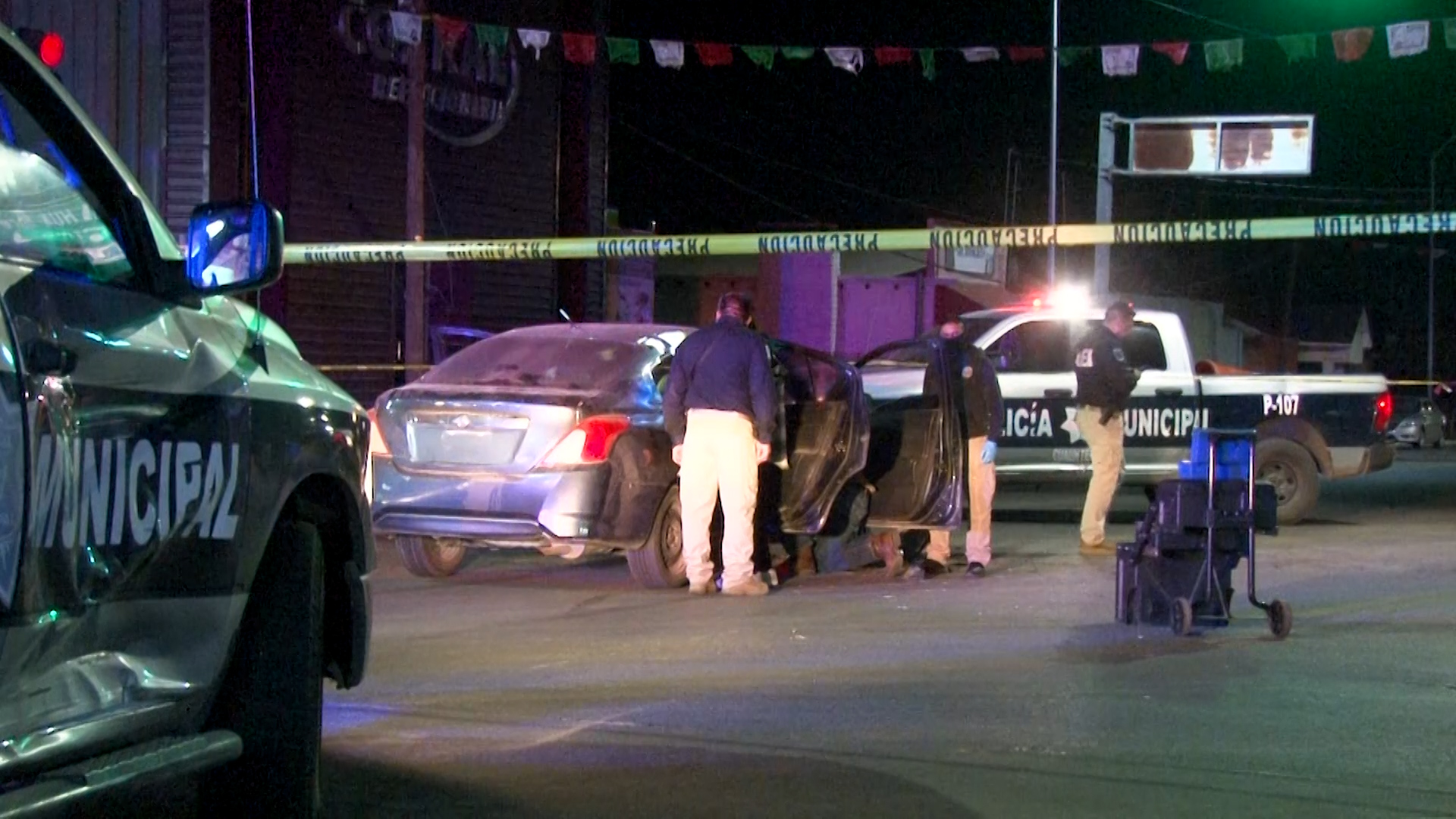 Minutos más tarde, agentes policiacos aseguraron un automóvil vinculado con el ataque. La unidad, de color azul oscuro, fue localizada chocada y abandonada en el cruce de las calles Ejido y Aldama, en la colonia Anáhuac.