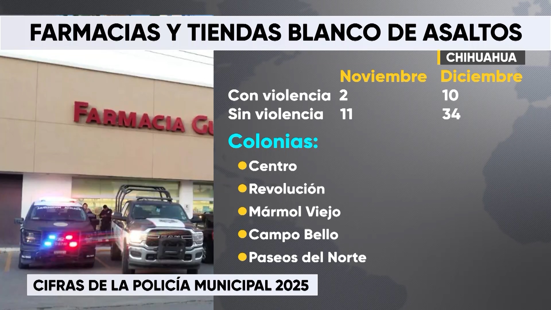 Chihuahua, Chih.- Según cifras de la Secretaría de Seguridad Pública Municipal de Chihuahua, al 8 de noviembre de 2025 se han registrado 13 casos de robo a negocios, dos de ellos con uso de violencia y 11 sin violencia.