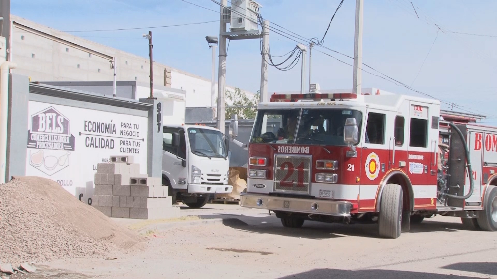 Delicias, Chih.- Un conato de incendio se registró en una bodega de refrigeración de alimentos ubicada en la calle Quinta Oriente, entre la avenida Solidaridad y avenida Décima, en la colonia Carmen Serdán, la tarde de este martes.