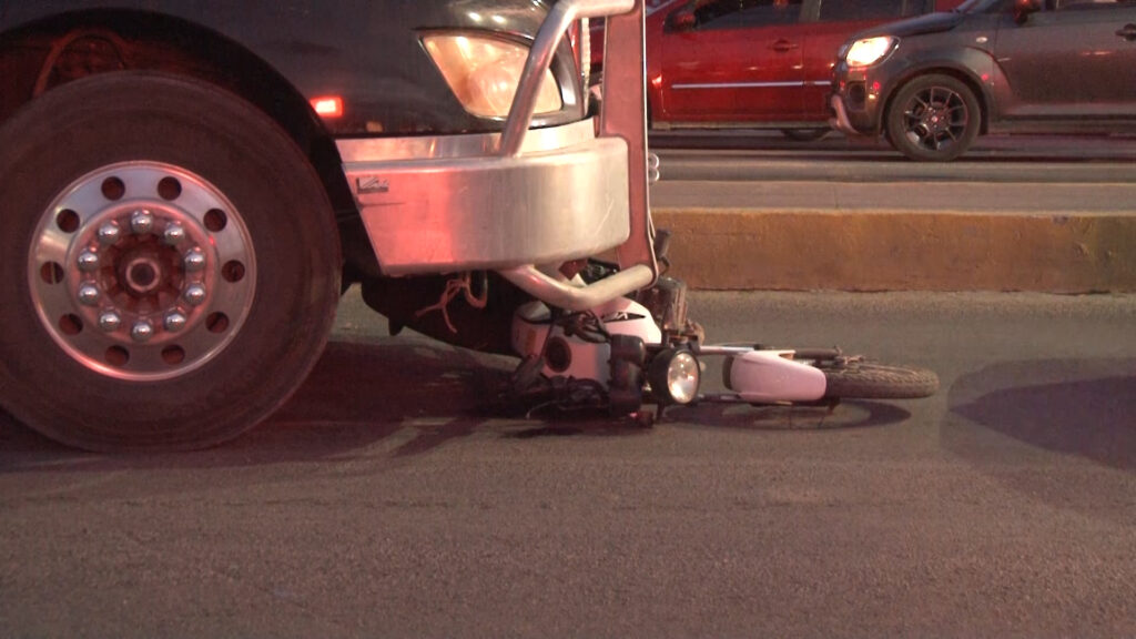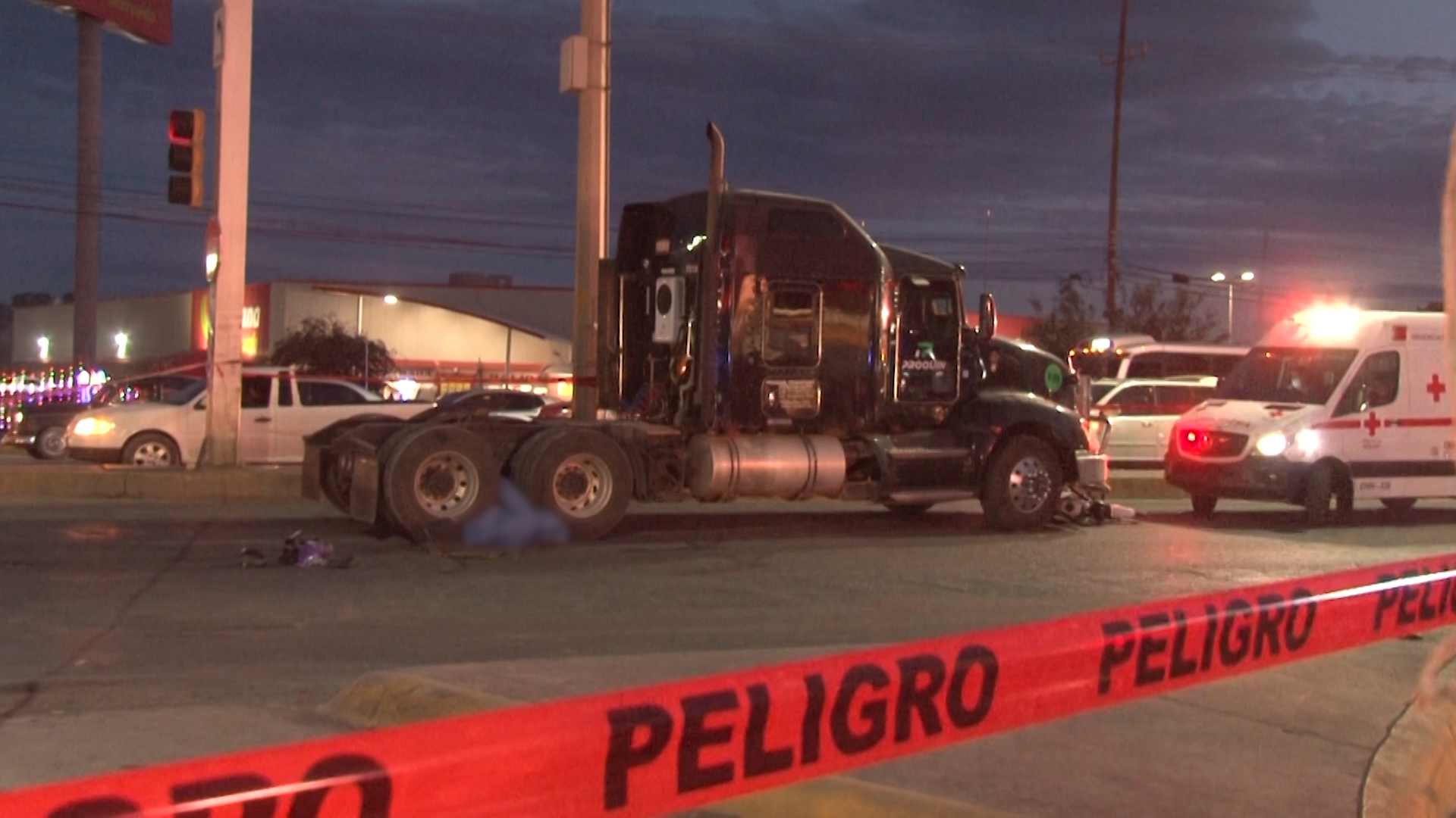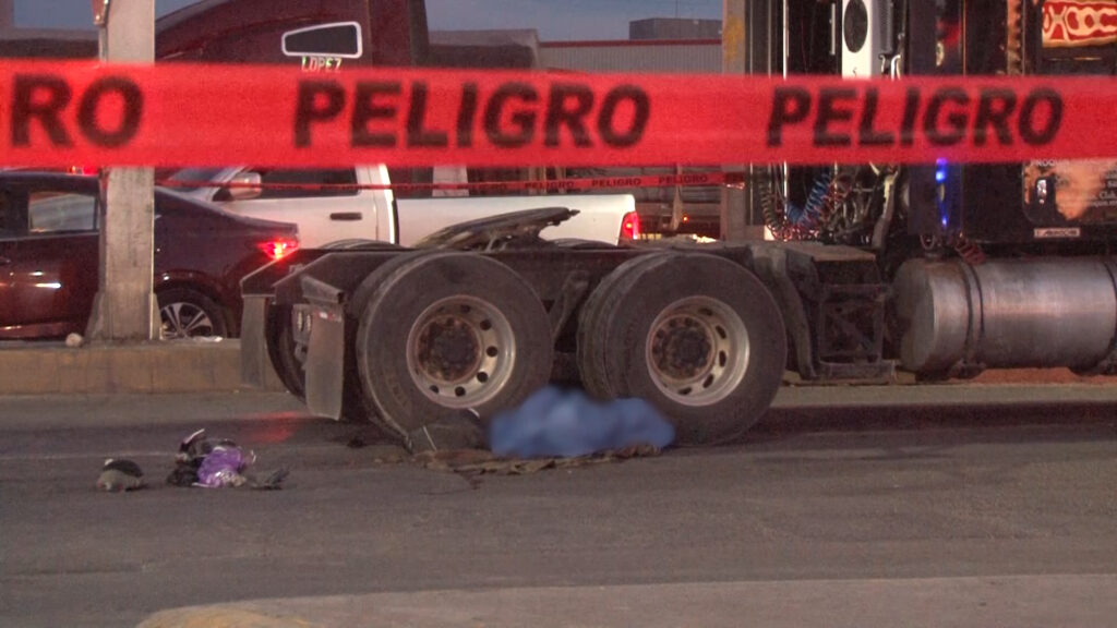 Chihuahua, Chih.- Tras un trágico accidente, un motociclista de aproximadamente 35 años perdió la vida luego de ser arrollado por un tractocamión en el cruce del Periférico Lombardo Toledano y bulevar Juan Pablo Segundo.