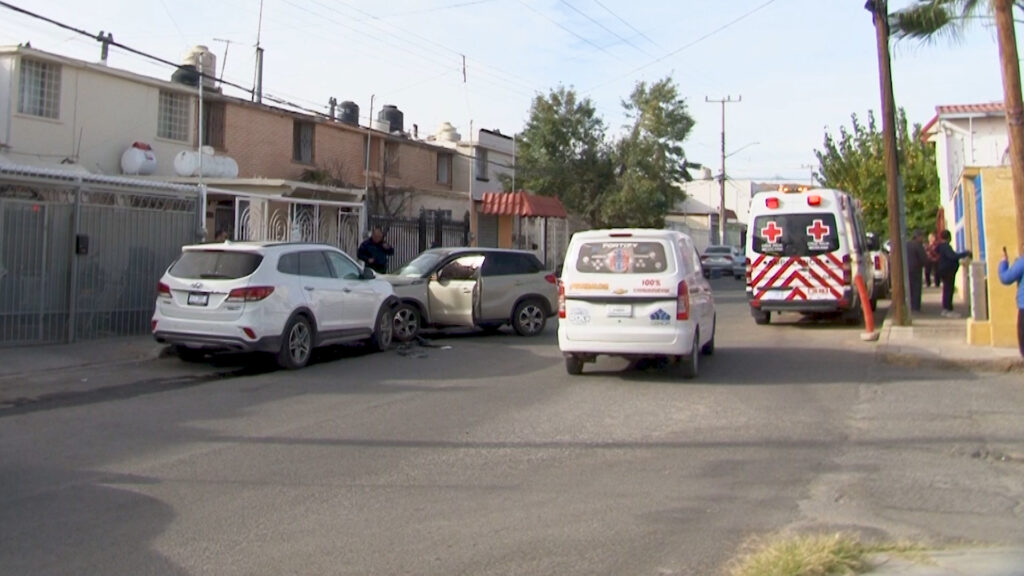 Chihuahua, Chih.- Un fuerte choque contra un vehículo estacionado dejó lesionada a una mujer de 43 años en el cruce de las calles Coyolxauhqui y Culhuacán, en la colonia Infonavit Nacional.