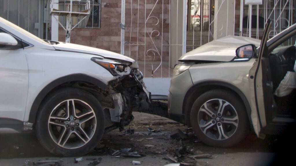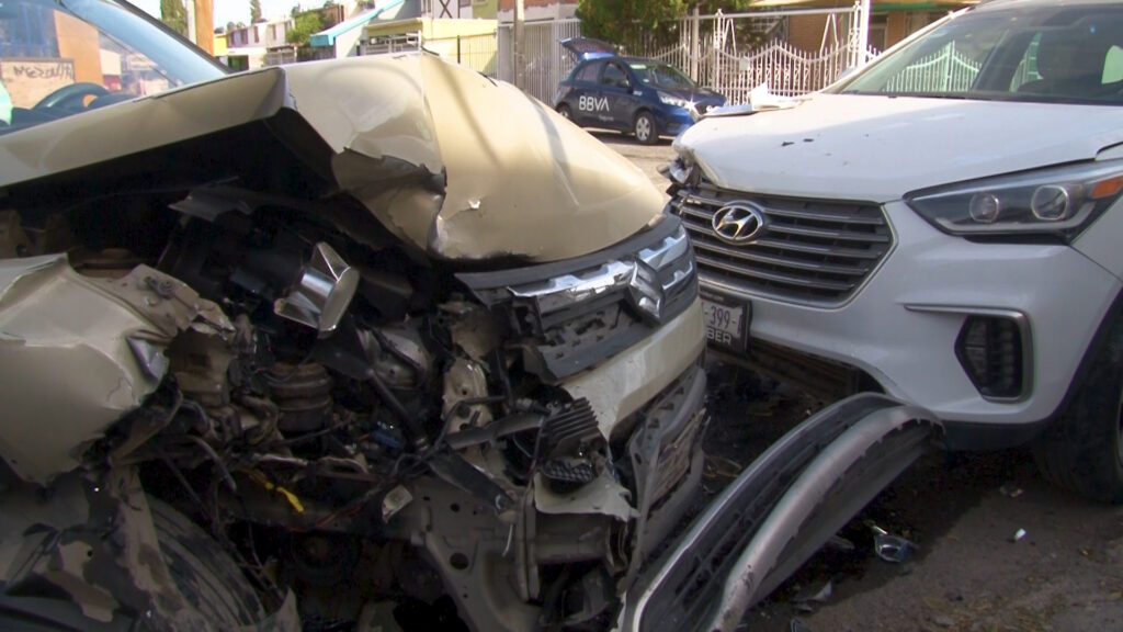 La conductora responsable circulaba a exceso de velocidad en una camioneta Suzuki Vitara color beige por la calle Coyolxauhqui cuando sintió un malestar repentino, perdió el control e impactó de frente contra una Hyundai Santa Fe que estaba estacionada. La mujer sufrió diversos golpes en el cuerpo.