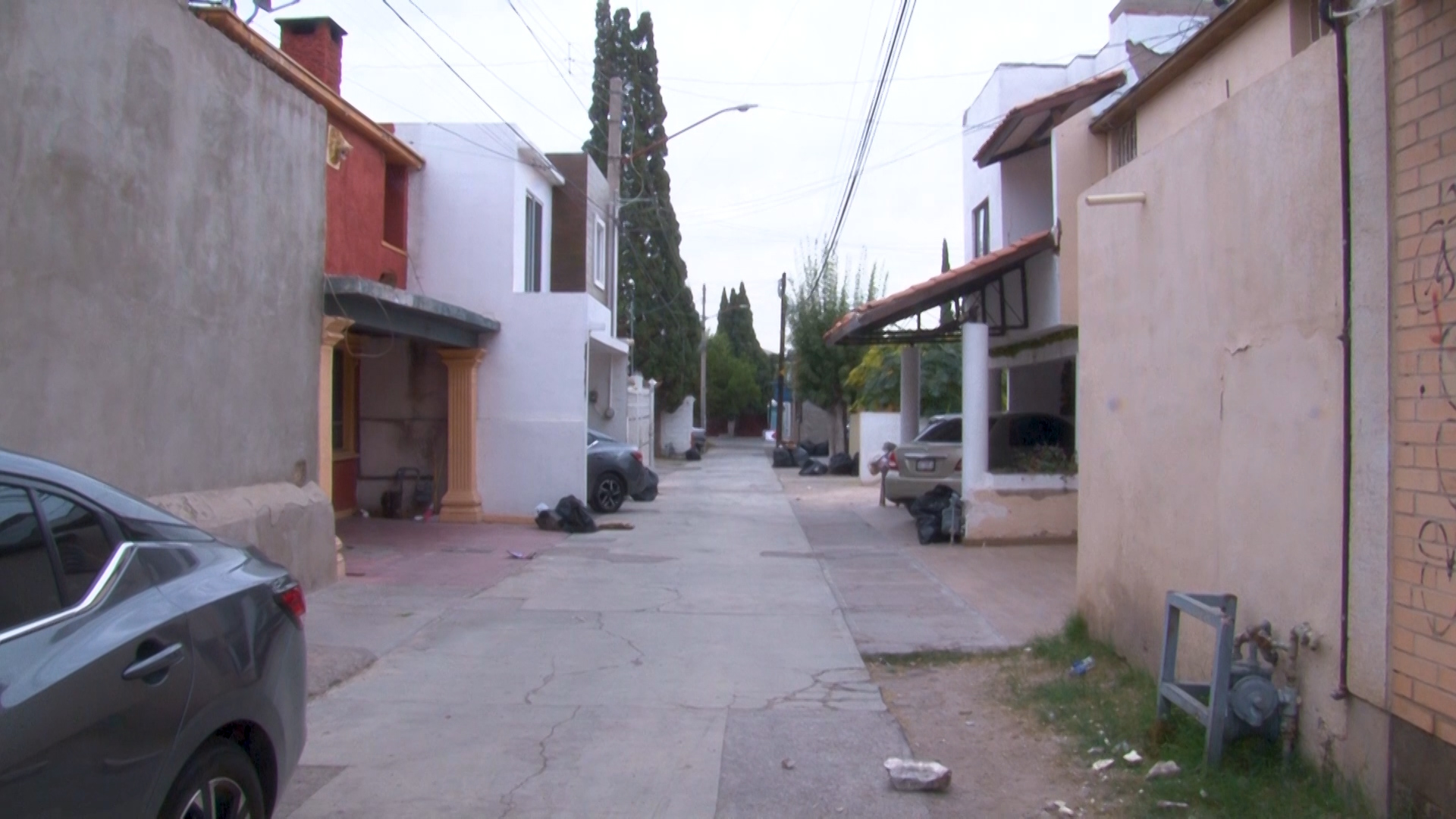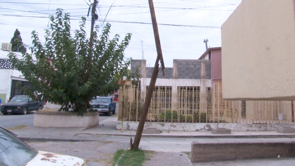 Chihuahua, Chih.- Vecinos de la calle Aztlán, en la colonia Infonavit Nacional, exigieron la reparación de los daños tras ser sorprendidos por un camión de Leche Zaragoza que se encontraba huyendo de las fuerzas de seguridad. El vehículo provocó destrozos severos en varios domicilios y en un poste de electricidad.