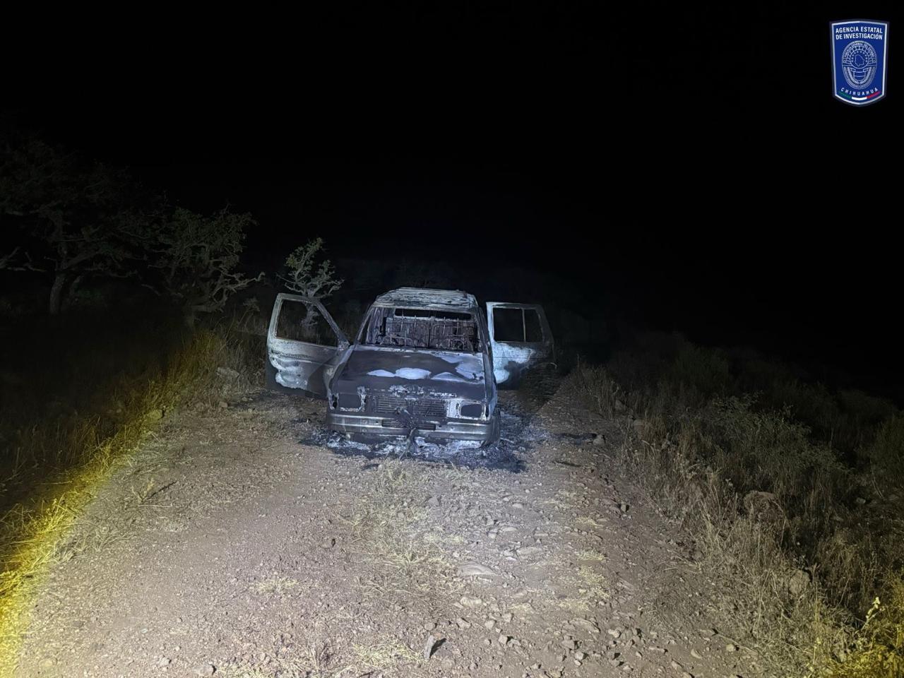 En la escena se localizó también un vehículo de la marca Nissan, línea Pathfinder, modelo 1993, el cual presentaba daños totales por incendio.