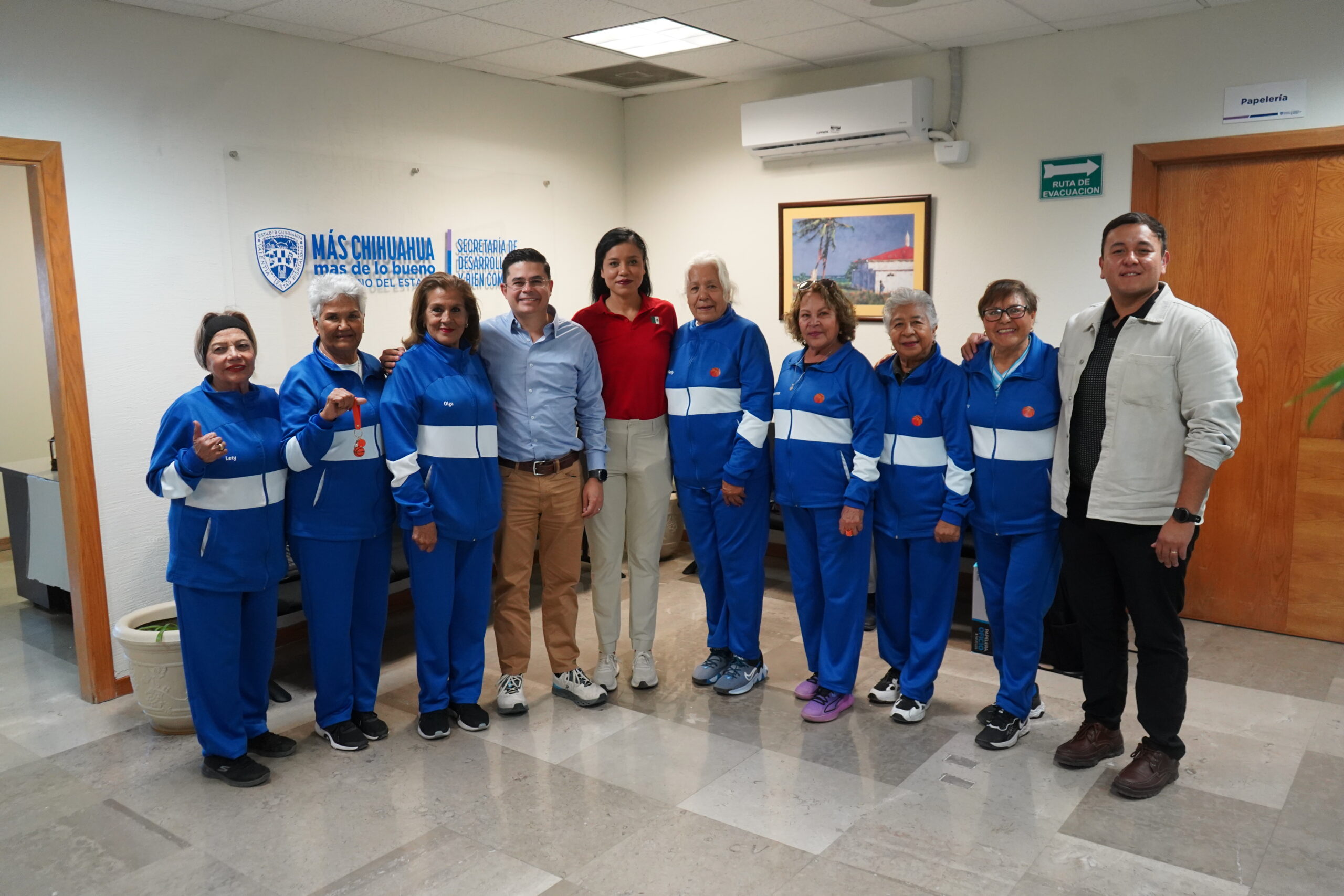 Chihuahua, Chih.- El secretario de Desarrollo Humano y Bien Común, Rafael Loera, reconoció al equipo de basquetbol “Adelitas” de la Casa de los Abuelos Deportiva por haberse coronado campeonas en la categoría 74 años del Torneo Nacional de Maxibaloncesto, celebrado en Puebla.