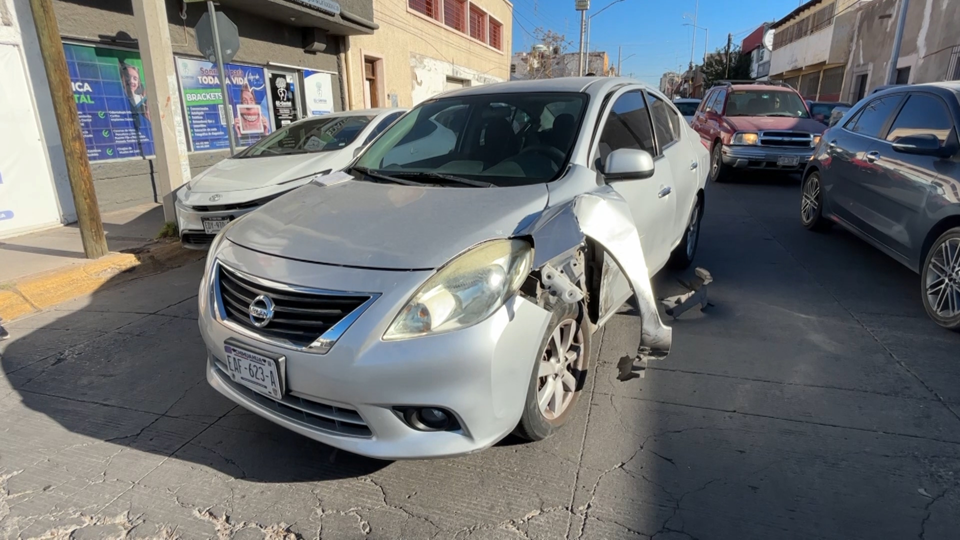 El incidente, ocurrido a unas cuadras del Bachilleres Número Uno, no dejó lesionados de consideración y dejó como saldo daños materiales severos en el Nissan Sentra, al haber volcado sobre su toldo, así como daños leves en el Nissan Versa.