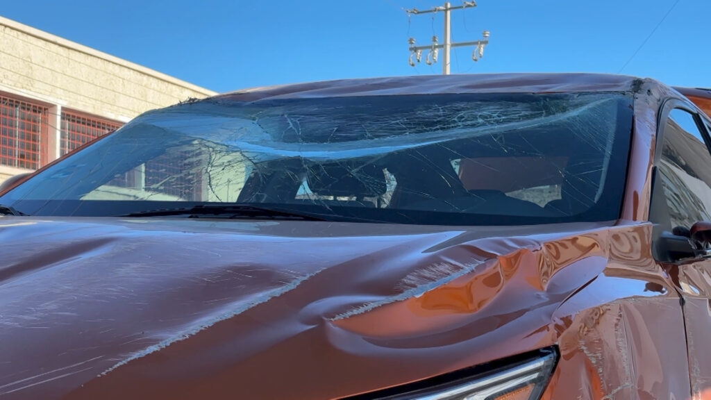Chihuahua, Chih.- Un vehículo Nissan Sentra resultó volcado tras chocar en su costado con un Nissan Versa y dar varias vueltas, en el cruce de la calle Victoria con Boulevard Díaz Ordáz, en el centro de la ciudad.