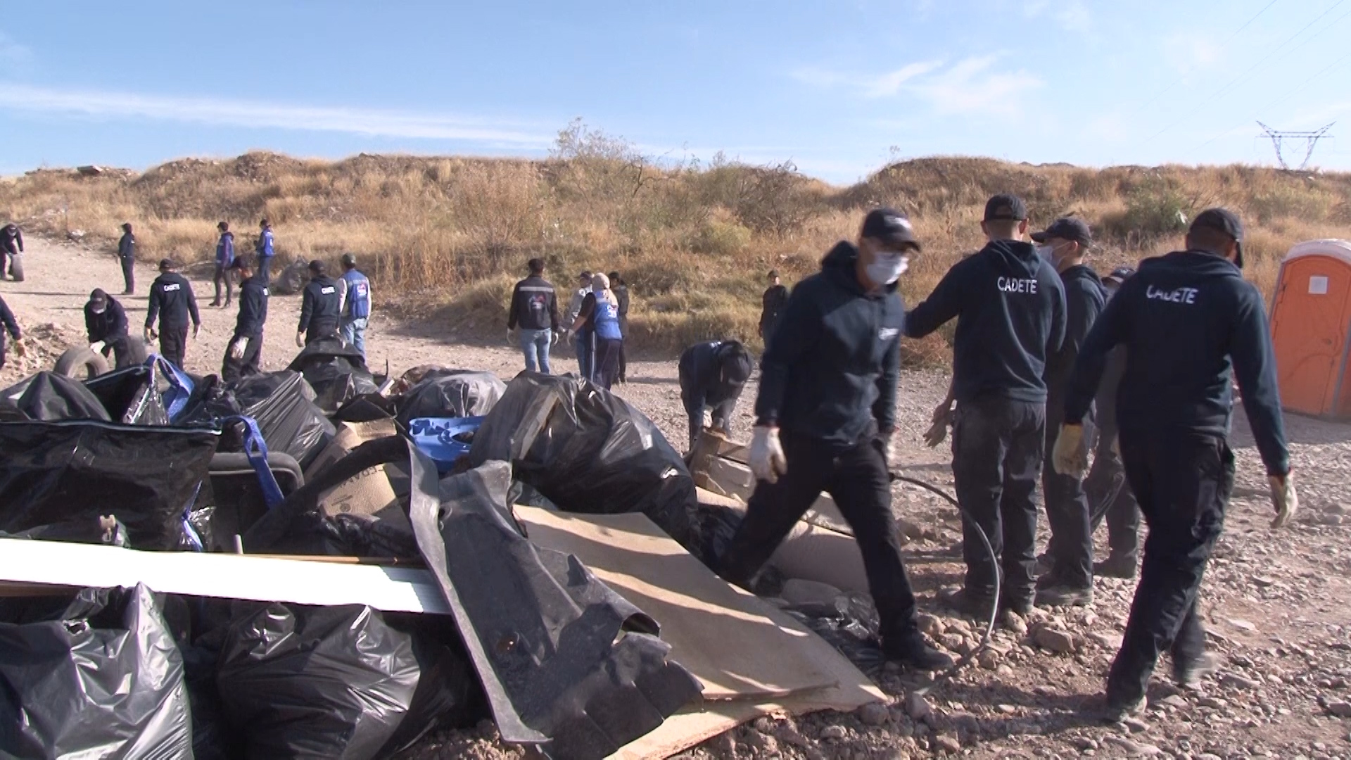 Chihuahua, Chih.- Ya son más de 500 las toneladas de basura levantadas en el proyecto “Rescatemos el Río Sacramento”. Este jueves, voluntarios, personal del municipio y vecinos de las colonias Los Minerales 1, 2 y 3 continuaron con la limpieza de la zona.
