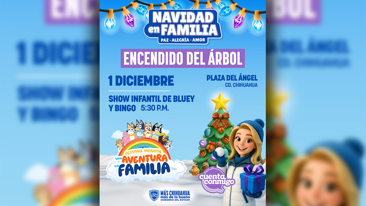 Chihuahua, Chih.- El Gobierno del Estado invita a los chihuahuenses al encendido del Árbol Navideño en la Plaza del Ángel el próximo primero de diciembre en punto de las 17:30 horas, evento que será encabezado por la gobernadora María Eugenia Campos Galván.