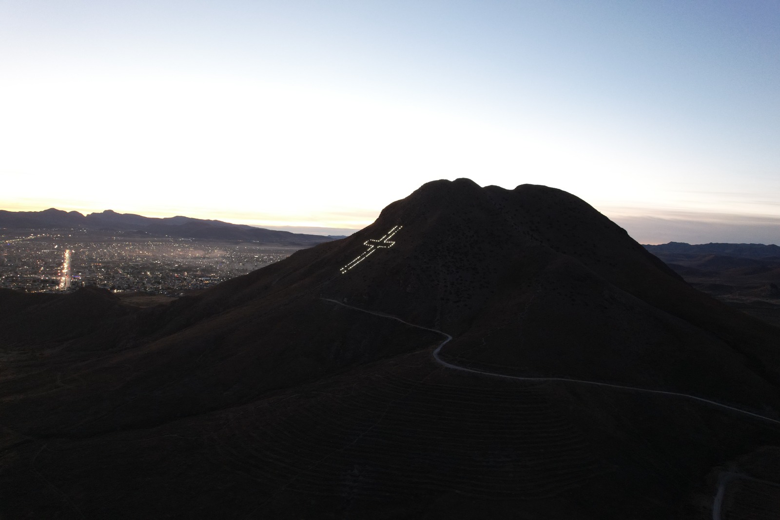 Chihuahua, Chih.- Desde la madrugada de hoy lunes 1 de diciembre y hasta finalizar las fechas decembrinas, la cruz ecuménica del Cerro Grande estará iluminada para que las y los chihuahuenses puedan visibilizarla desde distintos puntos de la ciudad.