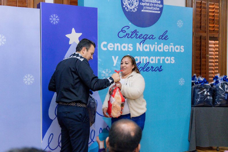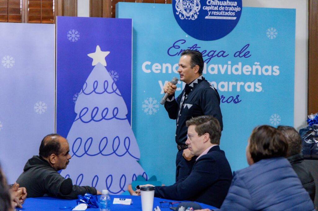 Chihuahua, Chih.- Con el fin de llevar la Navidad a los boleros del Centro Histórico, el alcalde Marco Bonilla realizó un convivio para entregarles apoyos.