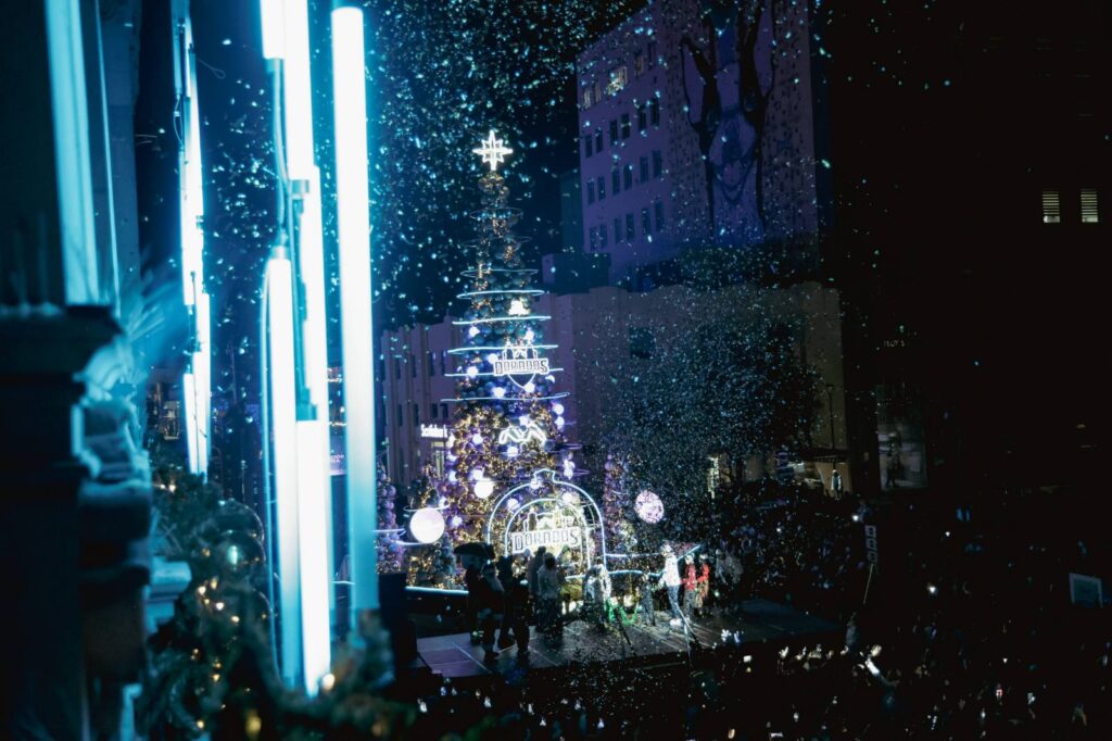 Chihuahua, Chih.- Con un ambiente lleno de emoción, espíritu familiar y música festiva navideña, la Plaza de Armas fue punto de encuentro para las familias chihuahuenses, quienes pudieron admirar el encendido del árbol dorado de 10 metros de altura instalado frente al edificio de la Presidencia Municipal.