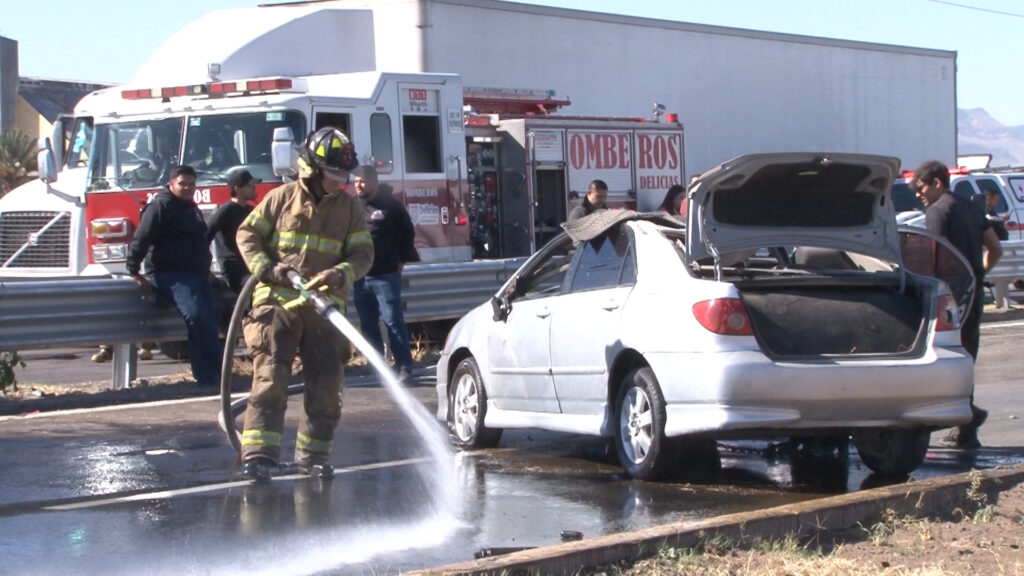 Según la información, el chofer se dirigía a Saucillo cuando perdió el control de su vehículo y terminó volcando.
