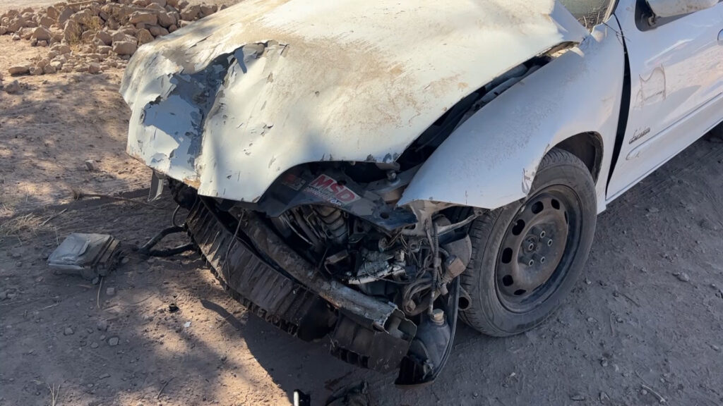 Chihuahua, Chih.- Una mujer de aproximadamente 30 años, a bordo de un Chevrolet Cavalier blanco, perdió el control del volante por exceso de velocidad y terminó impactando una vivienda en la calle 52 de la colonia Valle Dorado.