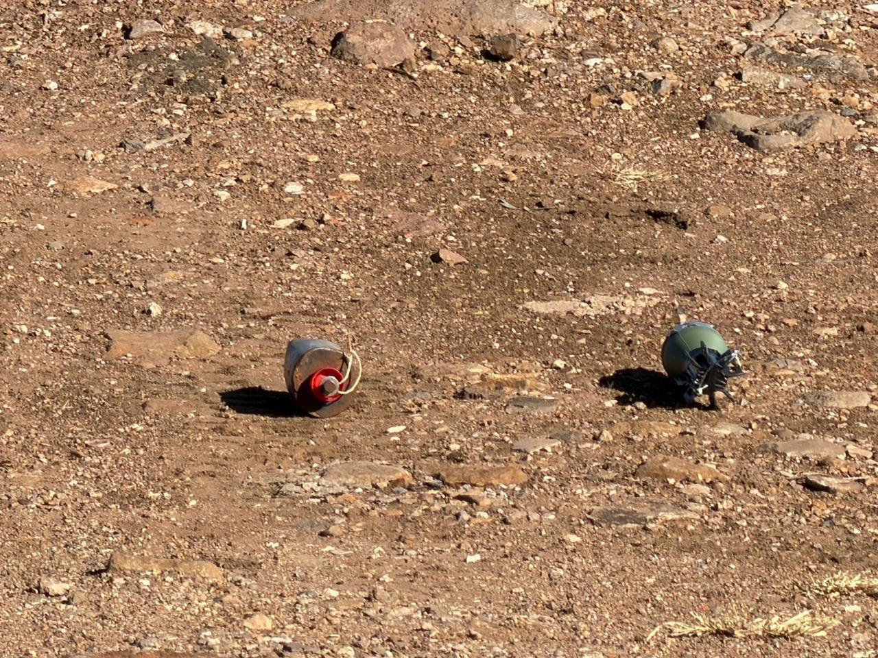 Durante la inspección se aseguraron varios paquetes envueltos en cinta canela con olor similar a la marihuana con un peso aproximado de 90 kilogramos, además de dos artefactos explosivos, uniformes tácticos y cuatro cascos balísticos.
