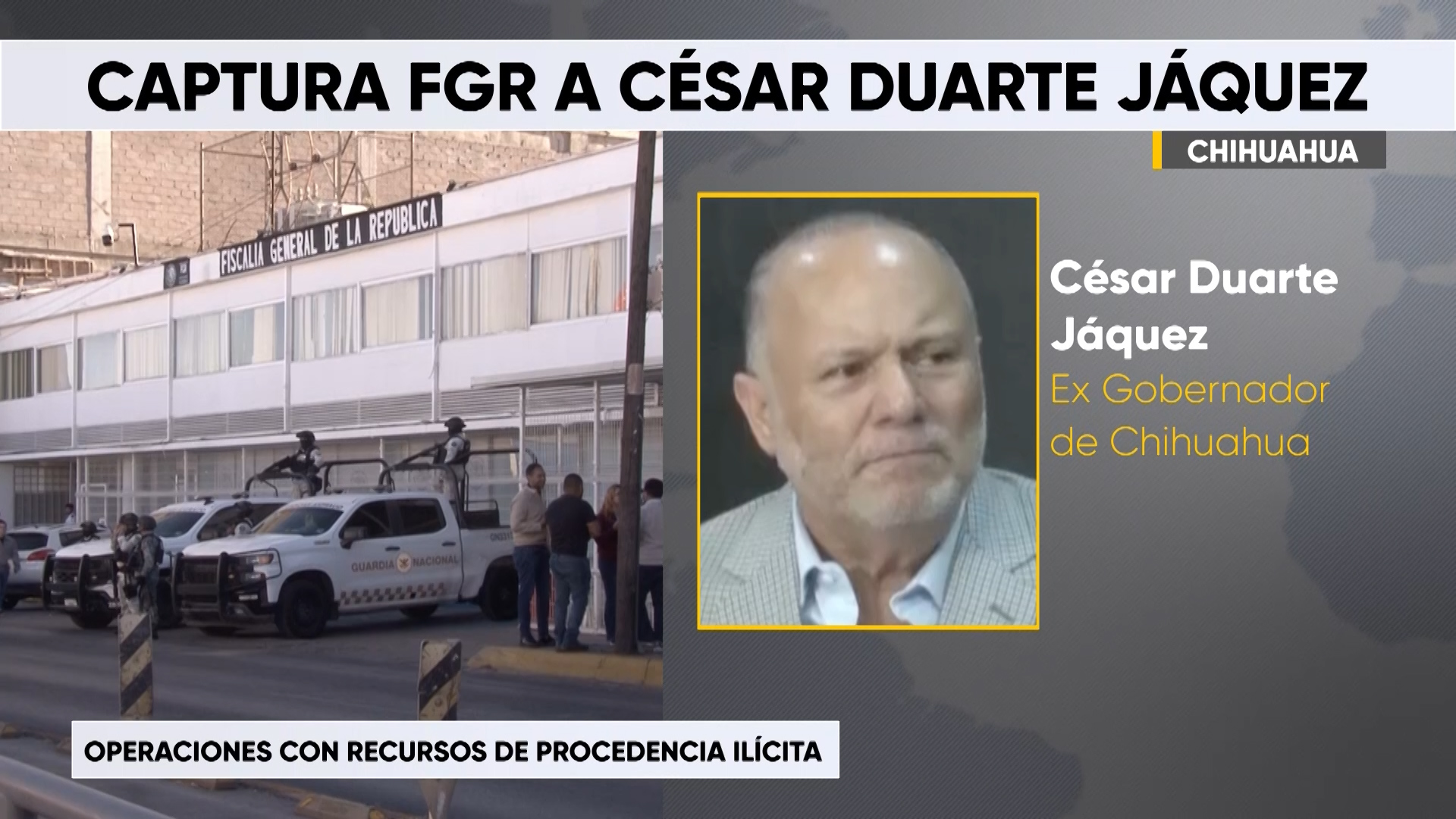 Chihuahua, Chih.- El exgobernador de Chihuahua, César Duarte Jáquez, fue detenido por la Fiscalía General de la República por su probable responsabilidad en el delito de operaciones con recursos de procedencia ilícita.