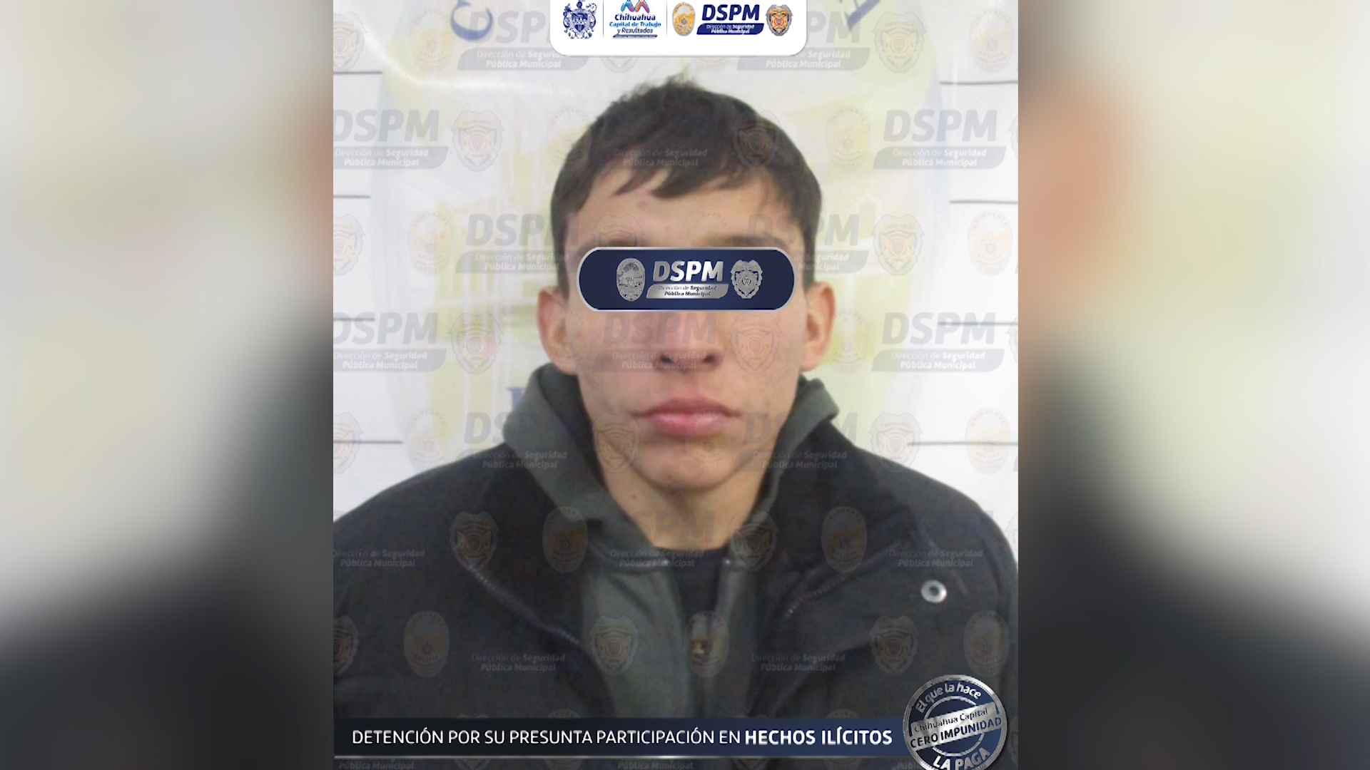 Chihuahua, Chih.- Un motociclista identificado como Fernando Uriel H. E., de 20 años, fue detenido por elementos de la Policía Municipal luego de que se le asegurara un arma de fuego que presuntamente intentó ocultar en un bote de basura al notar la presencia de los agentes, en la colonia Ignacio Allende.