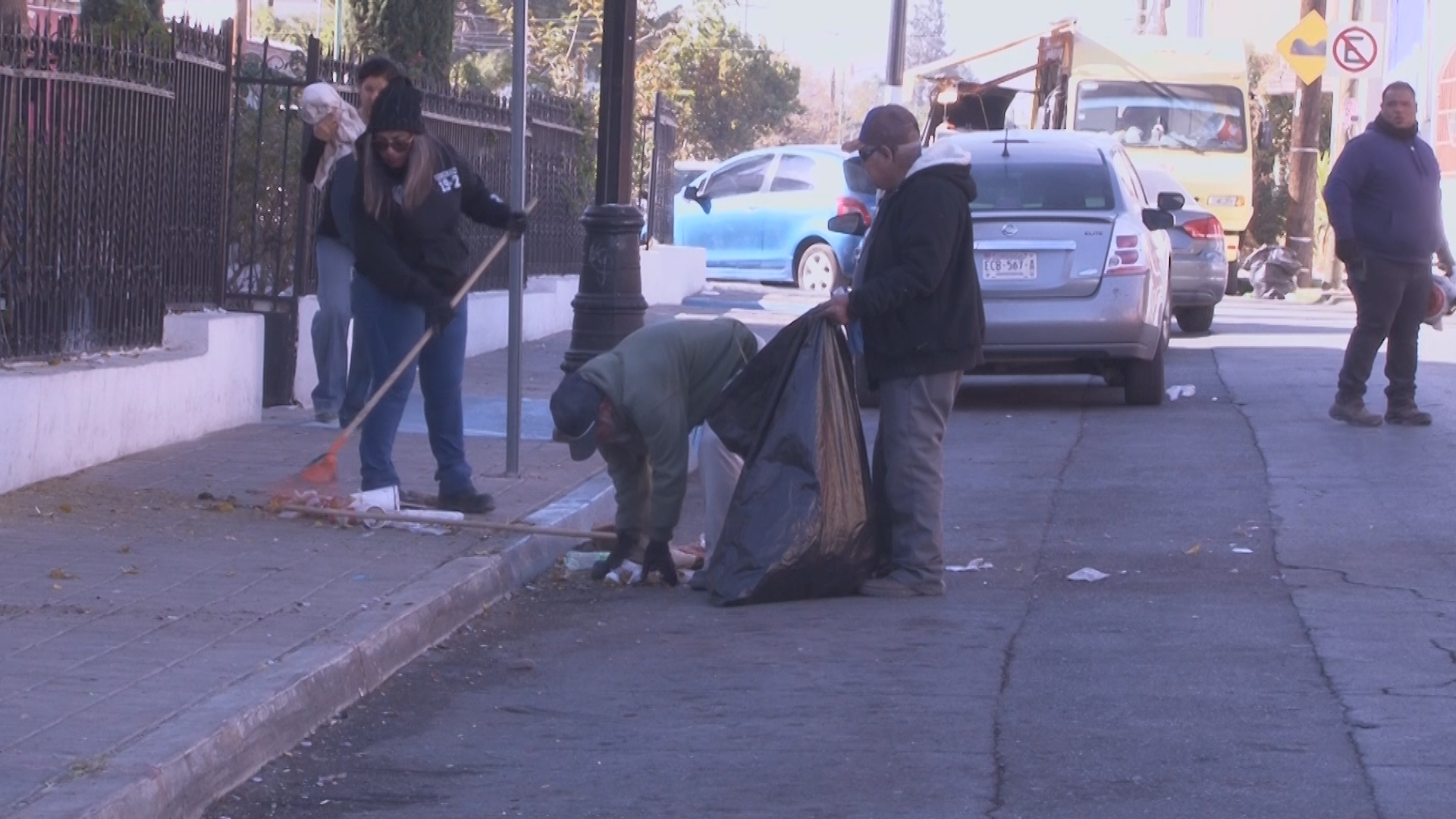 Personal de limpieza del Gobierno Municipal realizó labores de recolección durante toda la mañana, retirando envolturas, vasos de unicel y residuos plásticos acumulados en la zona.
