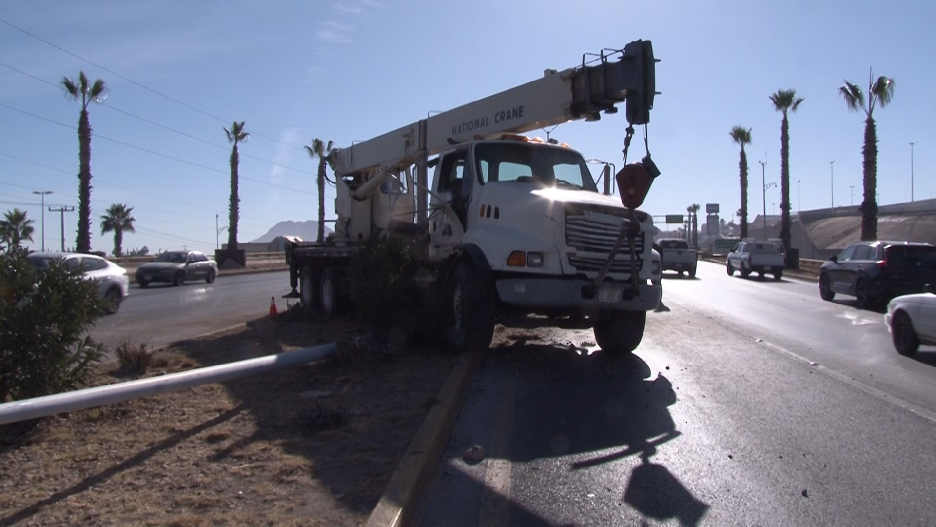 Chihuahua, Chih.- El conductor de una grúa de aproximadamente 20 toneladas protagonizó un aparatoso accidente vial al perder el control del volante mientras circulaba por el Periférico de la Juventud, a la altura de Fashion Mall.