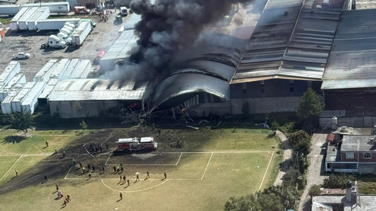 El jet cayó a unos 800 metros del aeropuerto de Toluca sobre un campo de futbol ubicado entre las calles Campo y San Pedro, en la delegación de San Pedro Totoltepec, en los límites con San Mateo Atenco.