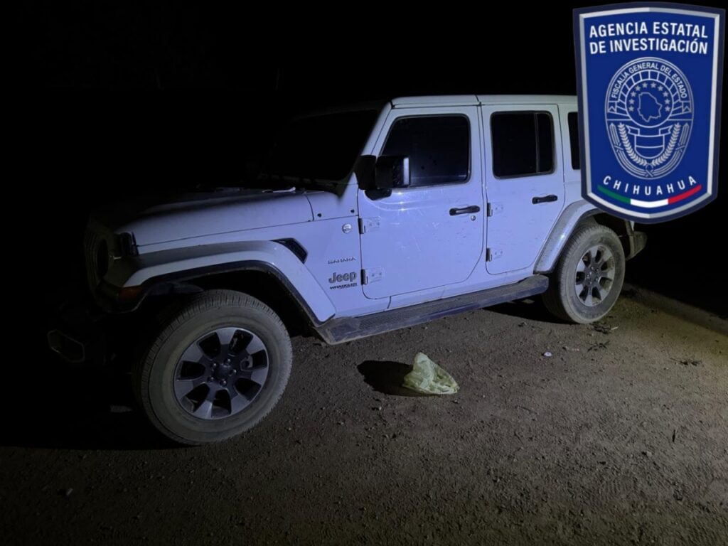 Un Jeep Sahara de color blanco con matrícula de Sinaloa.