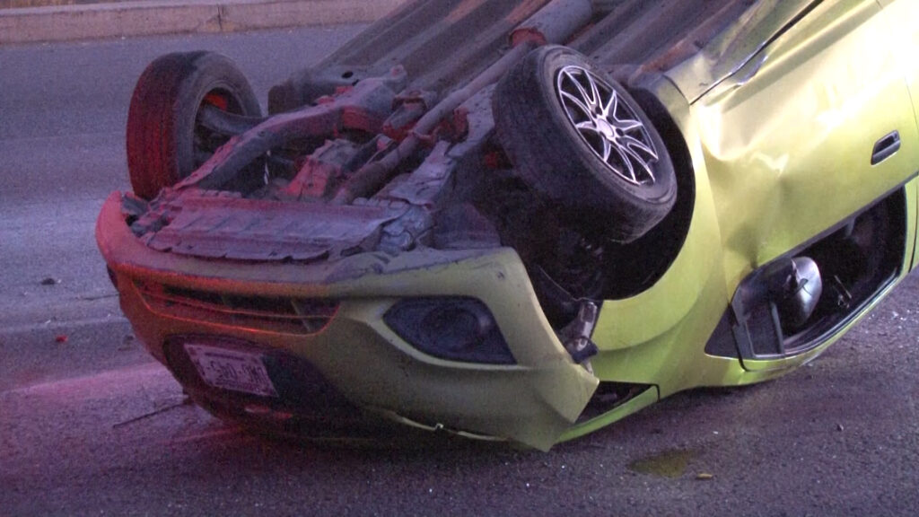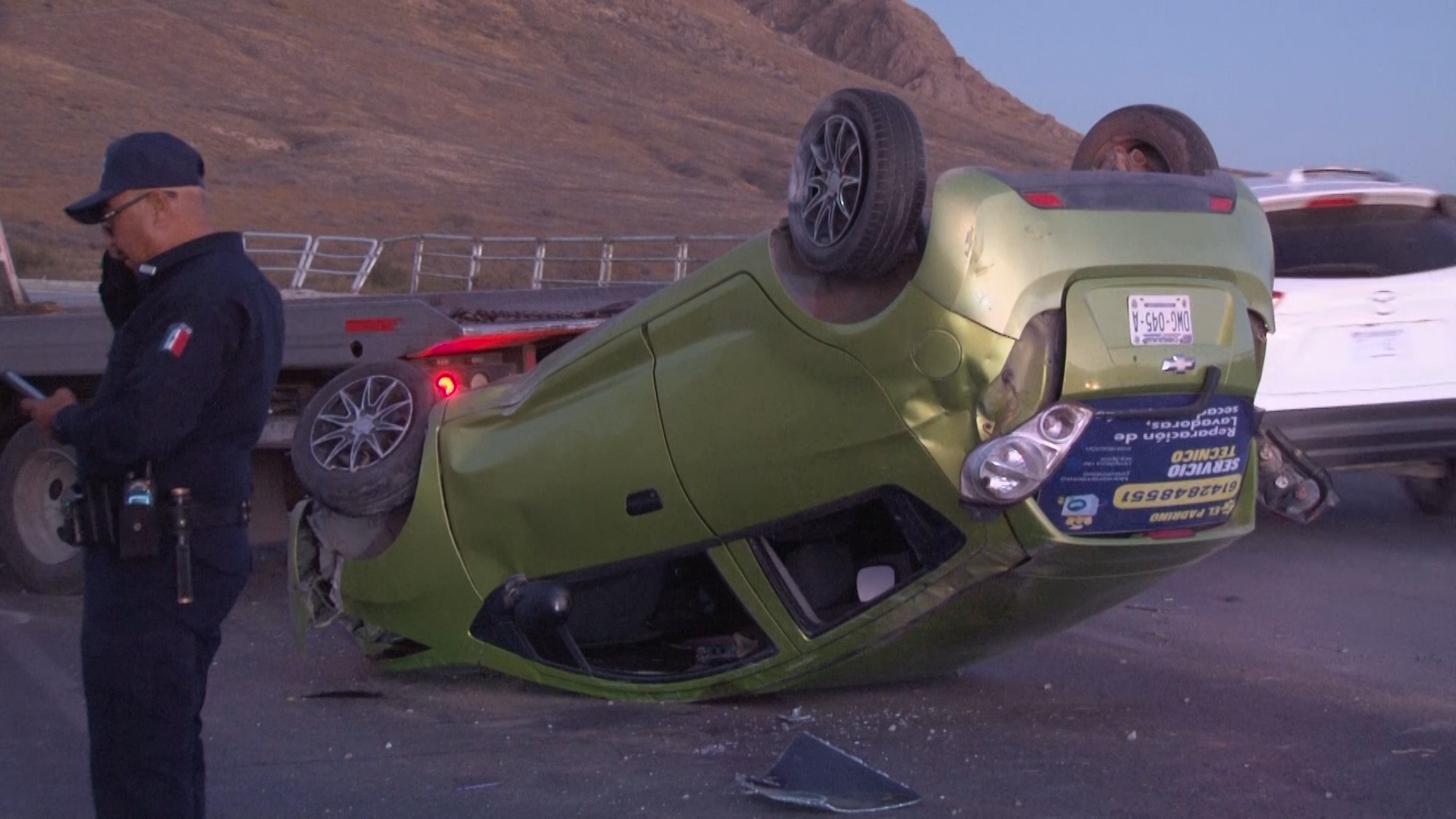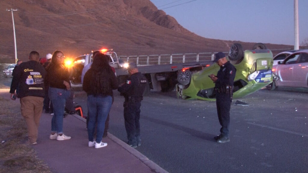 Chihuahua, Chih.- Una aparatosa volcadura dejó como saldo a dos personas lesionadas sobre el Periférico R. Almada, en el tramo comprendido entre la curva de los Corrales de “Oviedo Baca”.