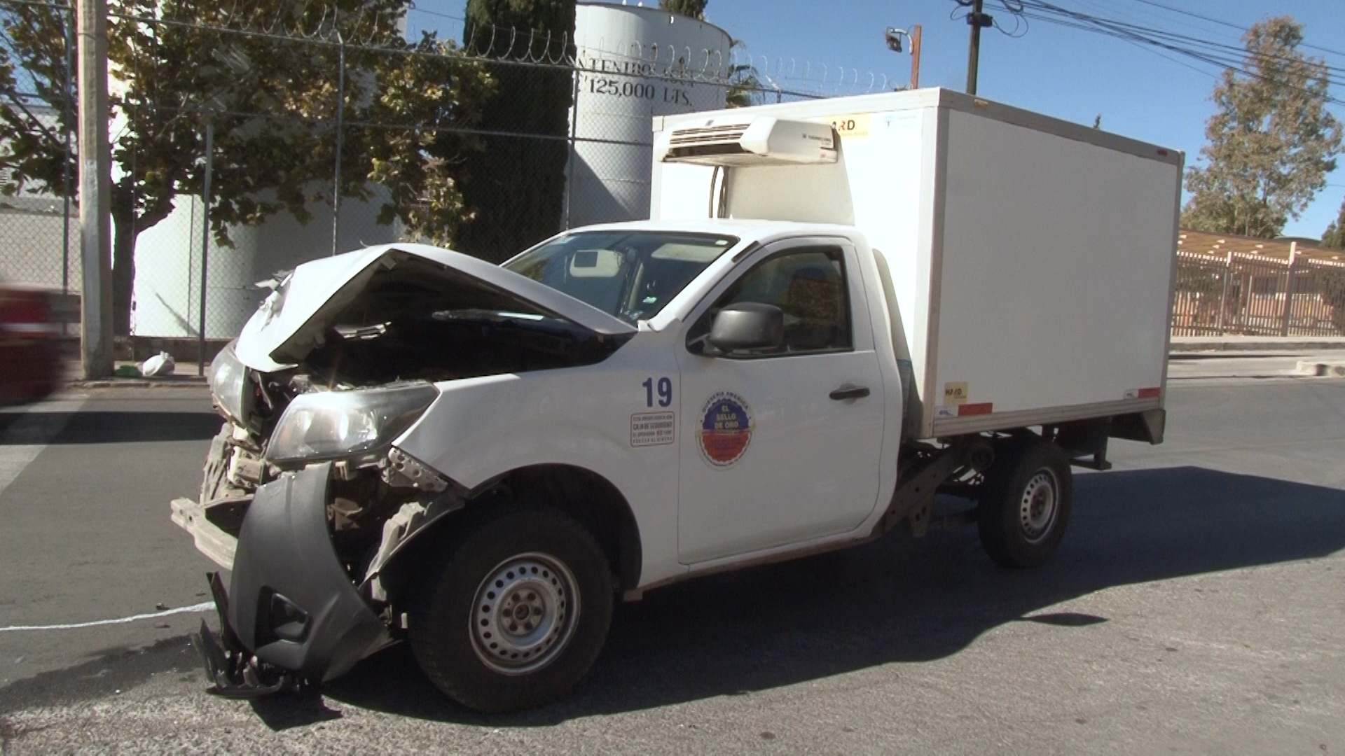 Chihuahua, Chih.- El conductor de una pick-up de carga de la empresa Sello de Oro perdió el control del volante e impactó a un camión de valores de la empresa Panamericano, dejando como saldo únicamente daños materiales.