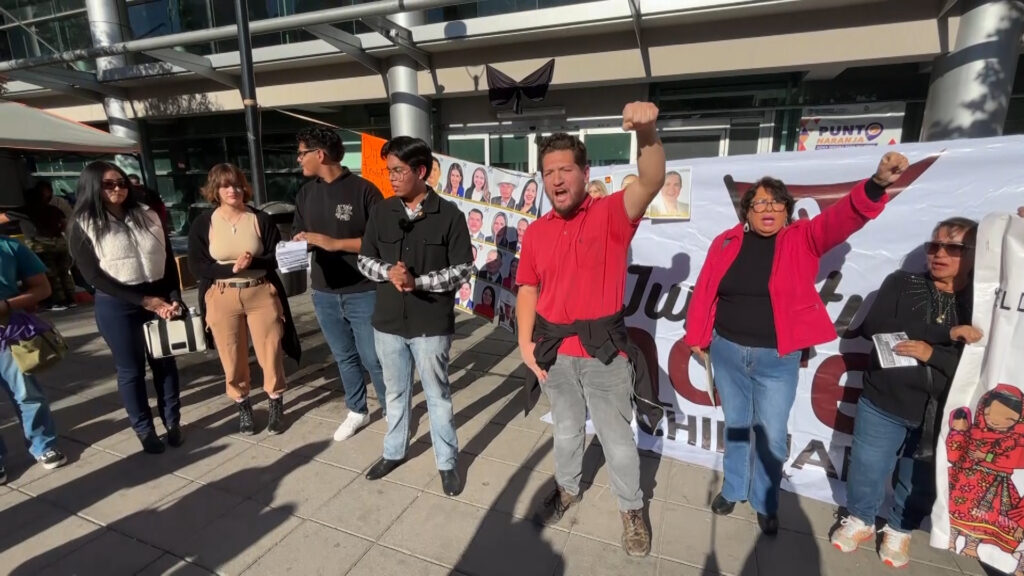 Chihuahua, Chih.- Ciudadanos pertenecientes a los grupos Juventudes de Morena y “Los de Abajo Organizados” se manifestaron en la entrada del Congreso del Estado en contra de la aprobación de la Ley de Ingresos 2026 para el estado de Chihuahua.