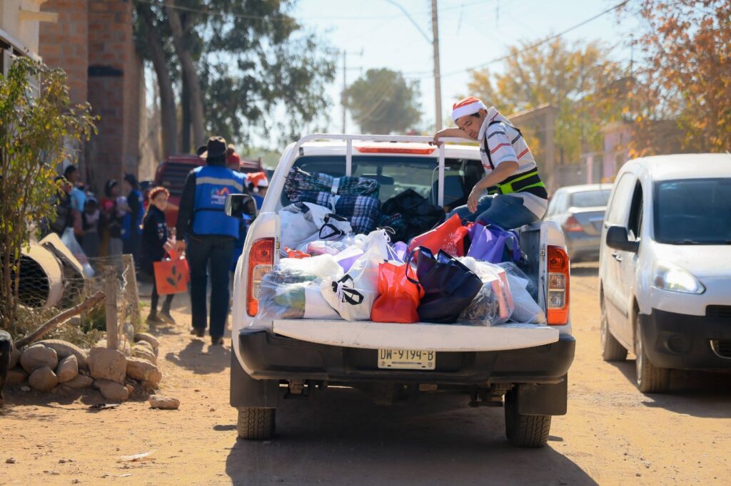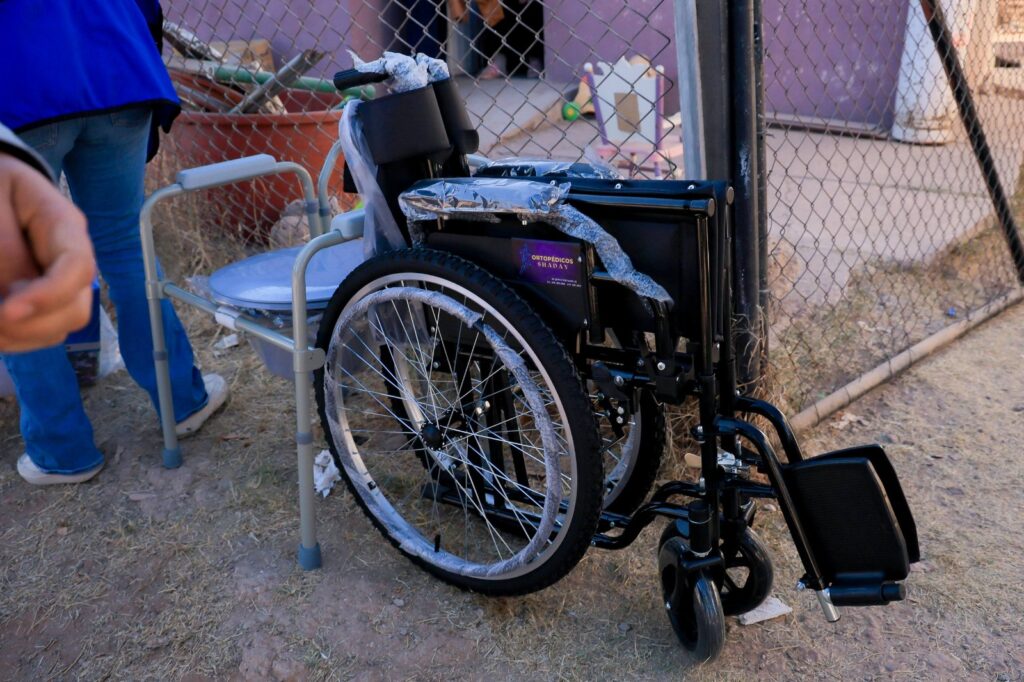 Durante la visita, se repartieron chamarras y juguetes para los niños y niñas, así como sillas de ruedas y andadores para adultos mayores.