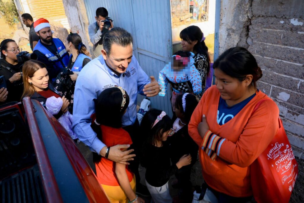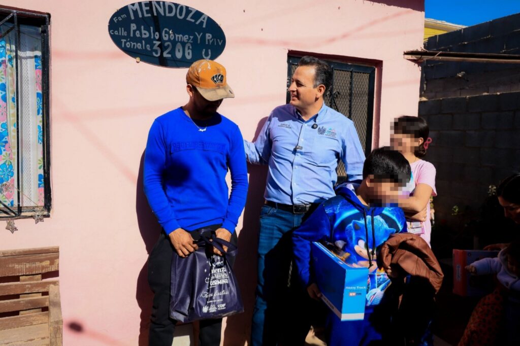 Chihuahua, Chih.- El alcalde de Chihuahua, Marco Antonio Bonilla, y su esposa, Karina Olivas, entregaron cenas navideñas a familias de la colonia Crucero, al sur de la ciudad.