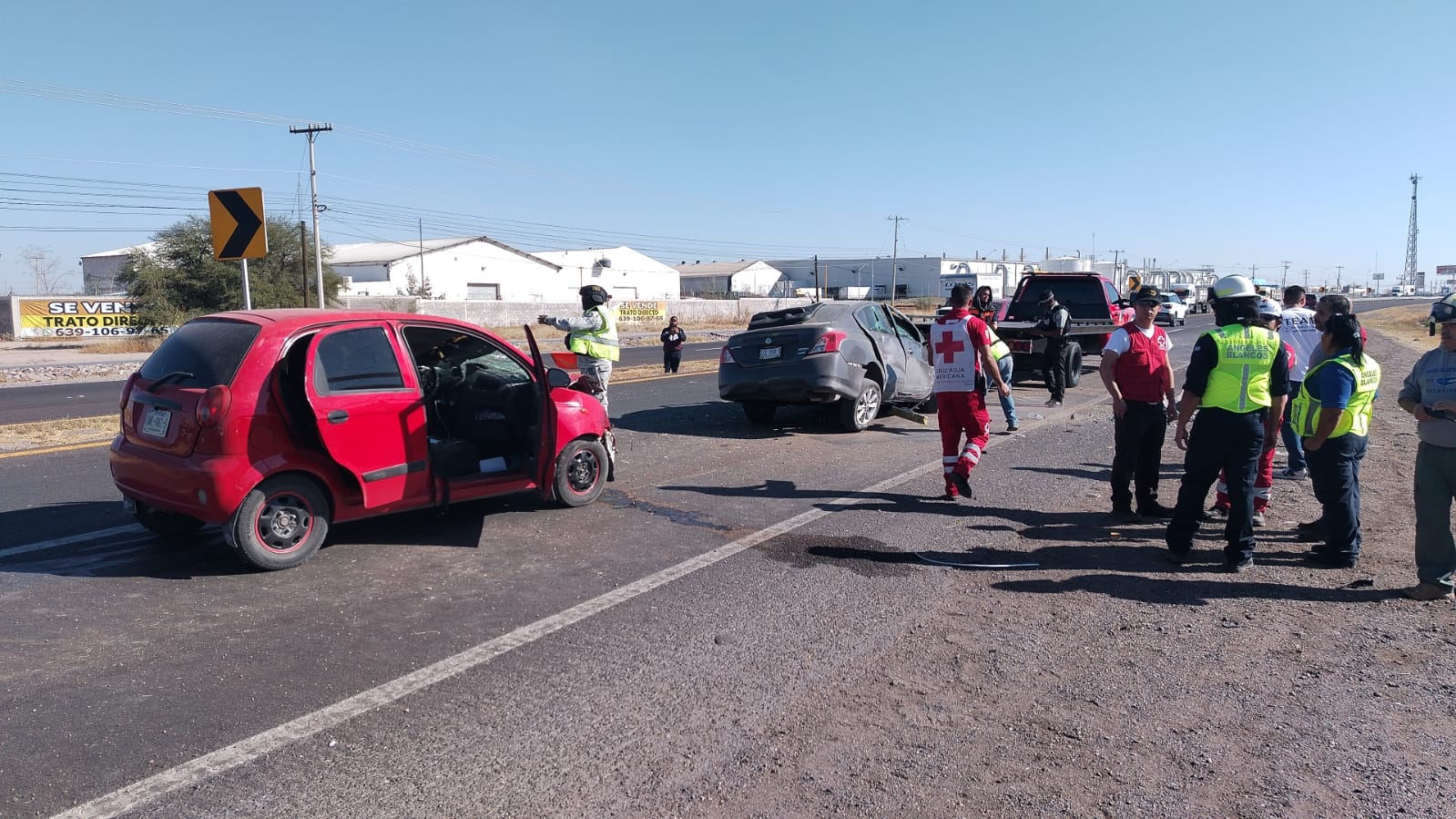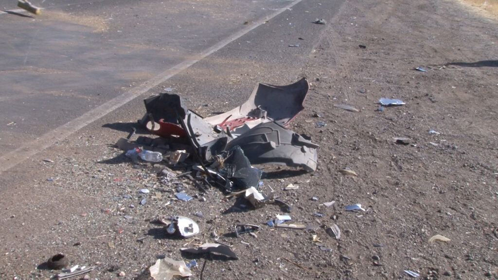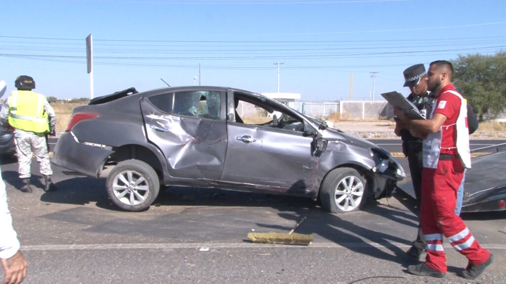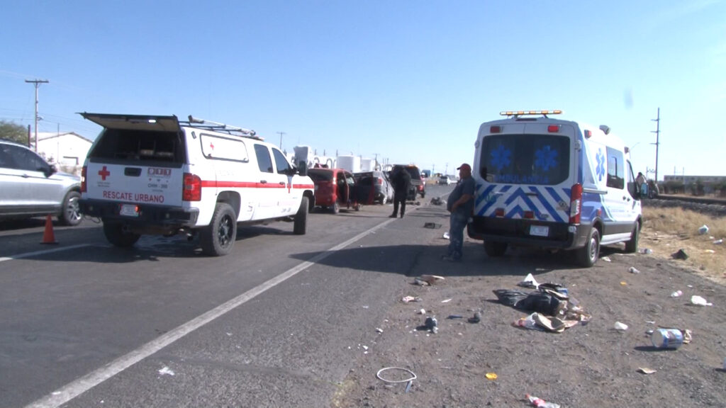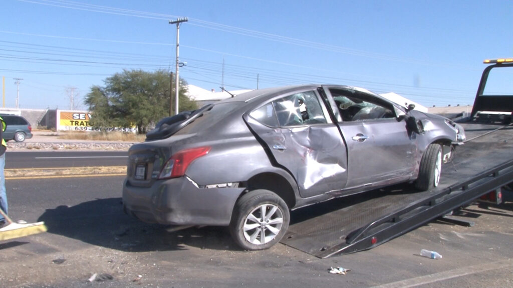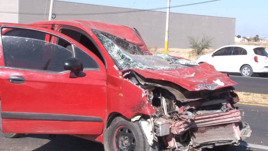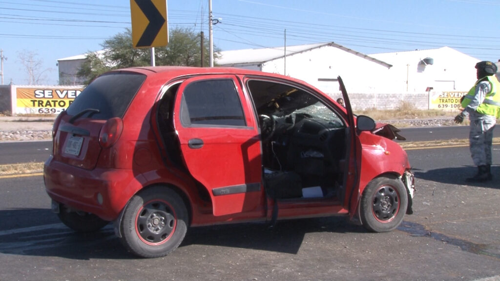 Delicias, Chih.- Un vehículo perdió el control y brincó hacia el sentido contrario, provocando un choque a la altura del kilómetro 135 de la carretera 45, en el tramo de Delicias a Saucillo, cerca de una maquiladora y el puente de Cielo Vista, la tarde del martes.