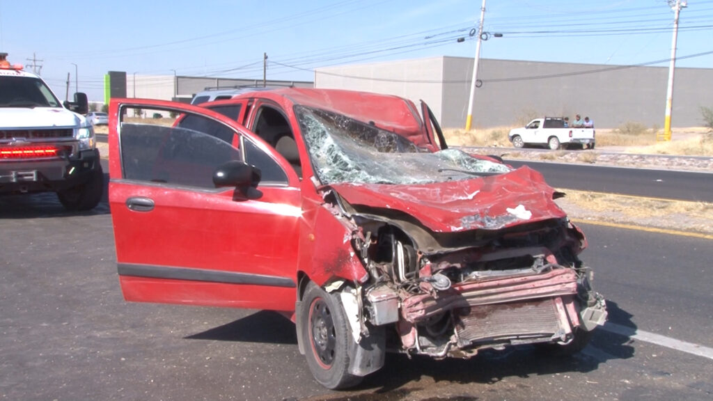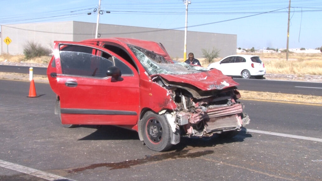 Según la información, el conductor de un Nissan Versa circulaba en dirección a Delicias cuando perdió el control, brincó hacia el lado opuesto y fue impactado de frente por un Chevrolet Matiz color rojo.